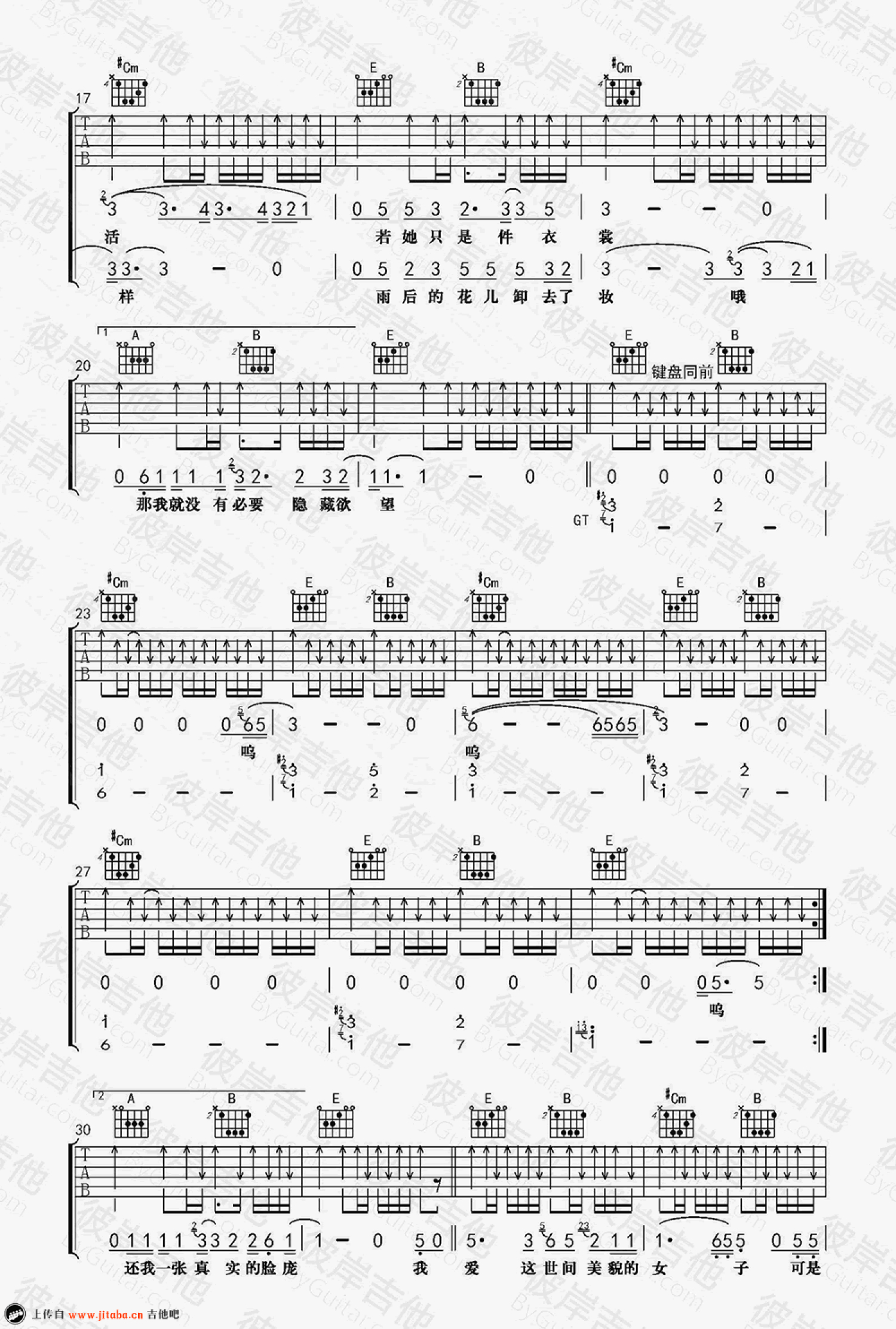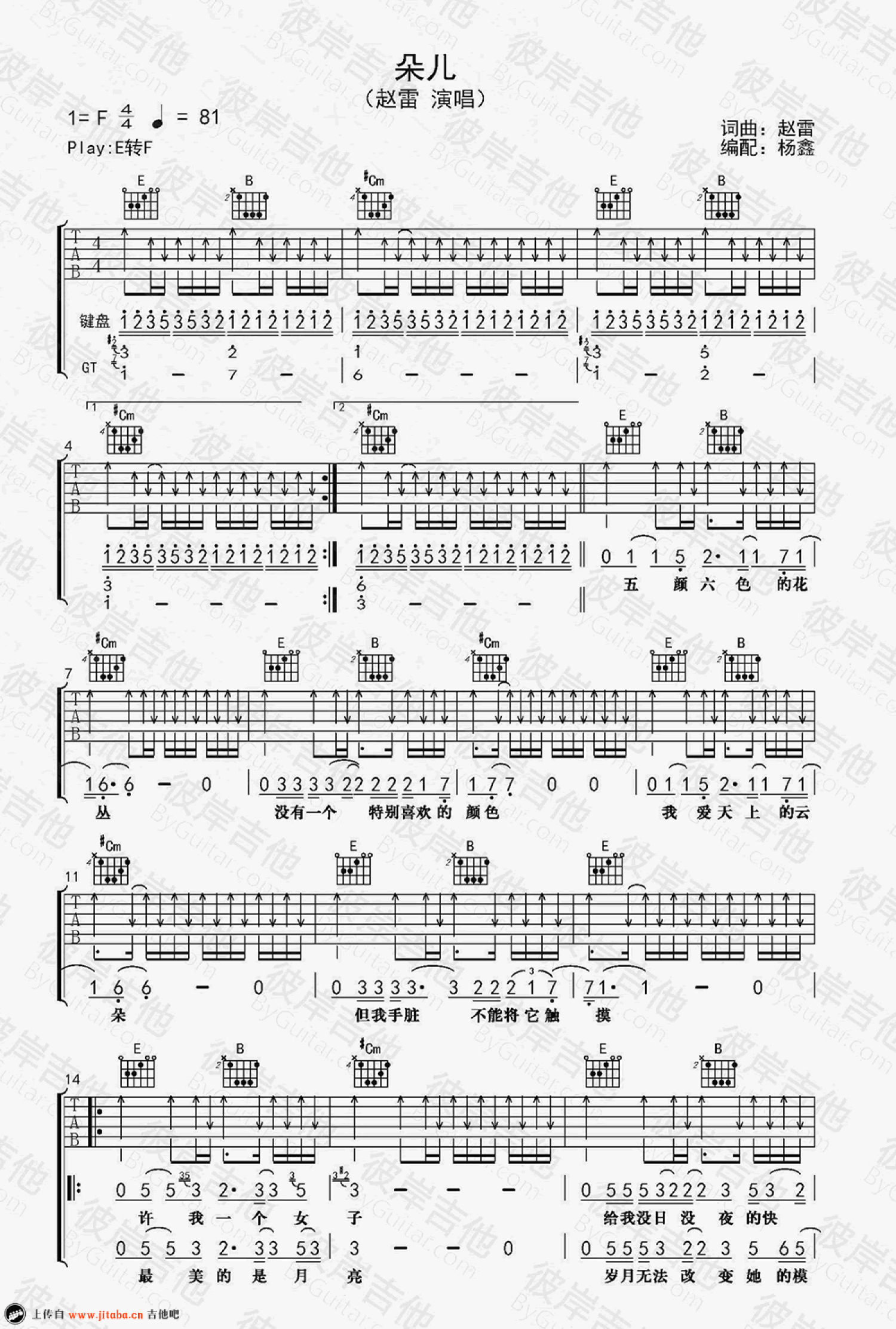 吉他弹唱E调来源:杨鑫7426 浏览2018-03-19 13:34发布图谱共4页