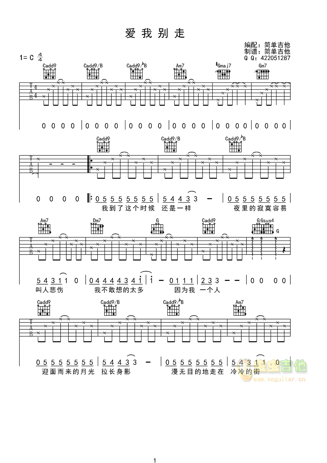 当前位置:琴谱网>吉他弹唱>爱我别走