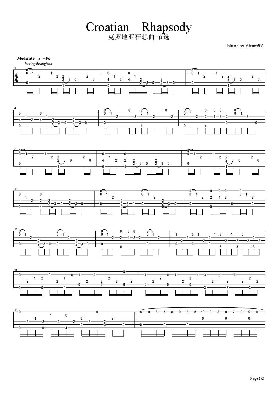 克罗地亚狂想曲吉他谱 - 独奏曲 - 吉他独奏谱
