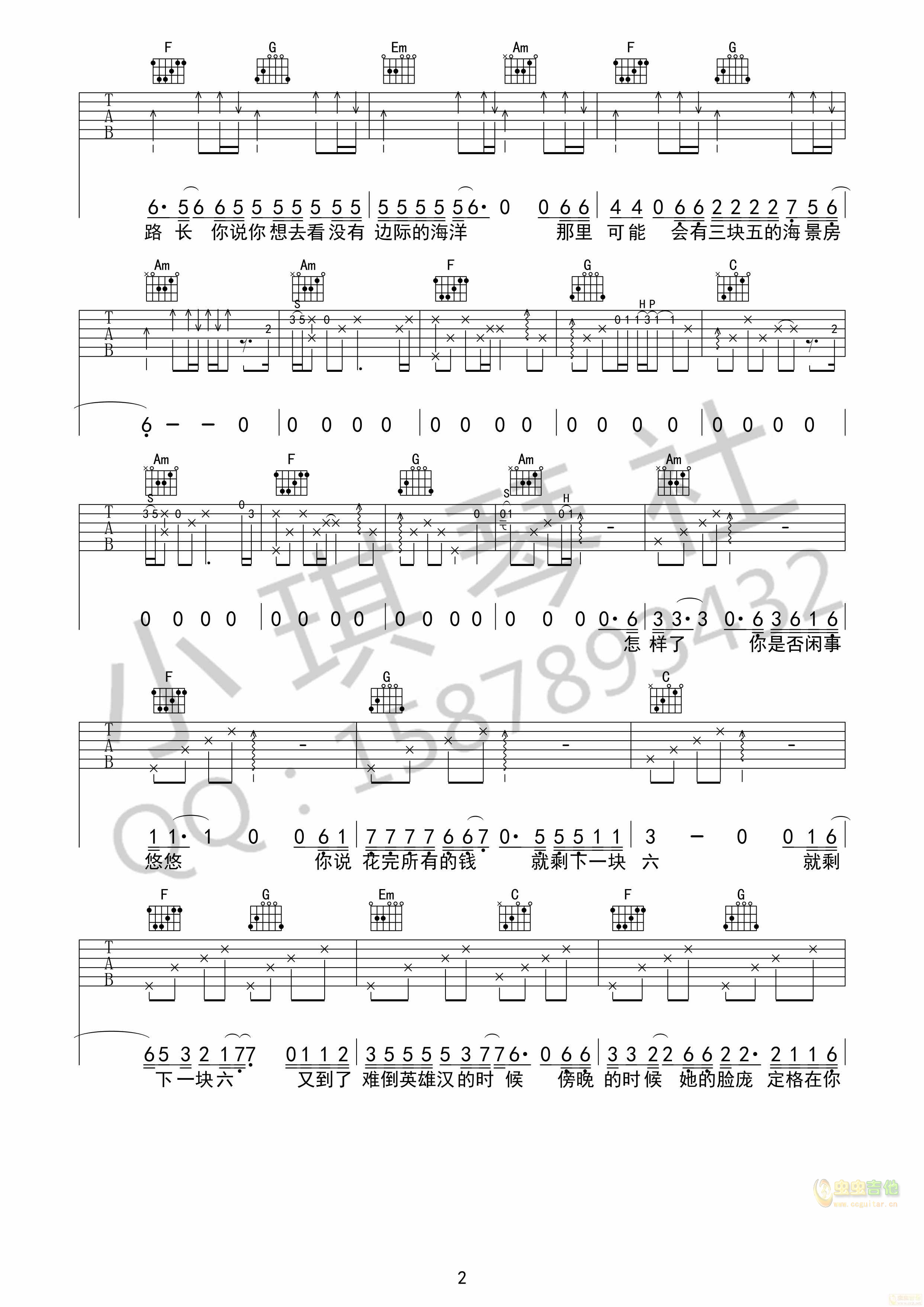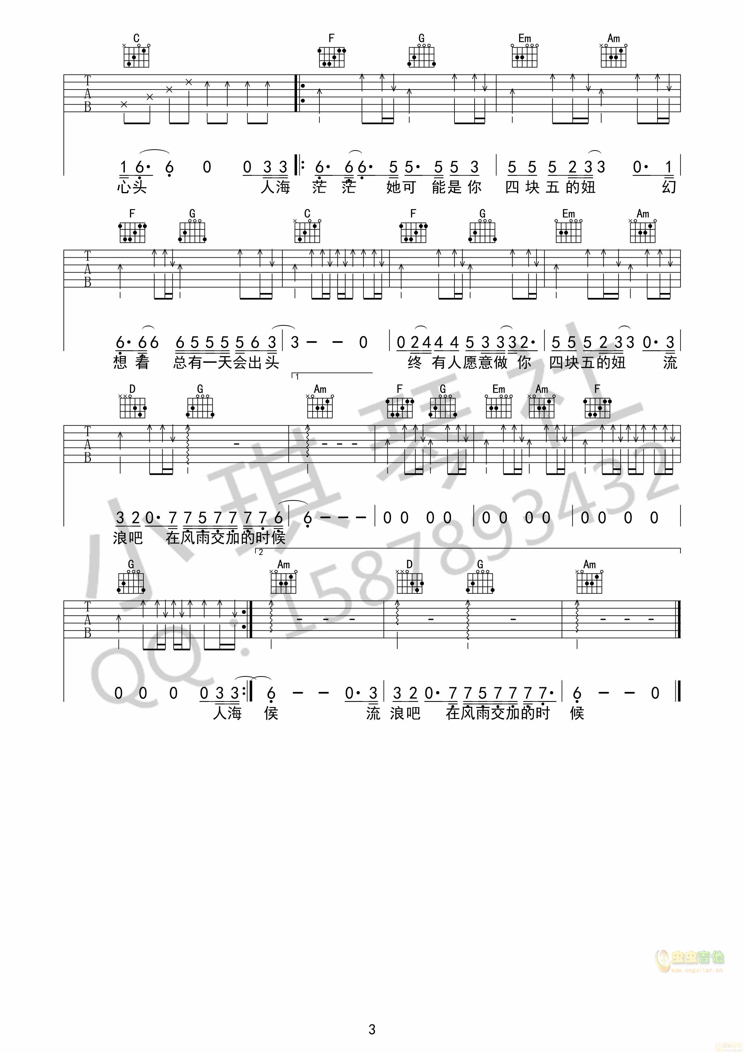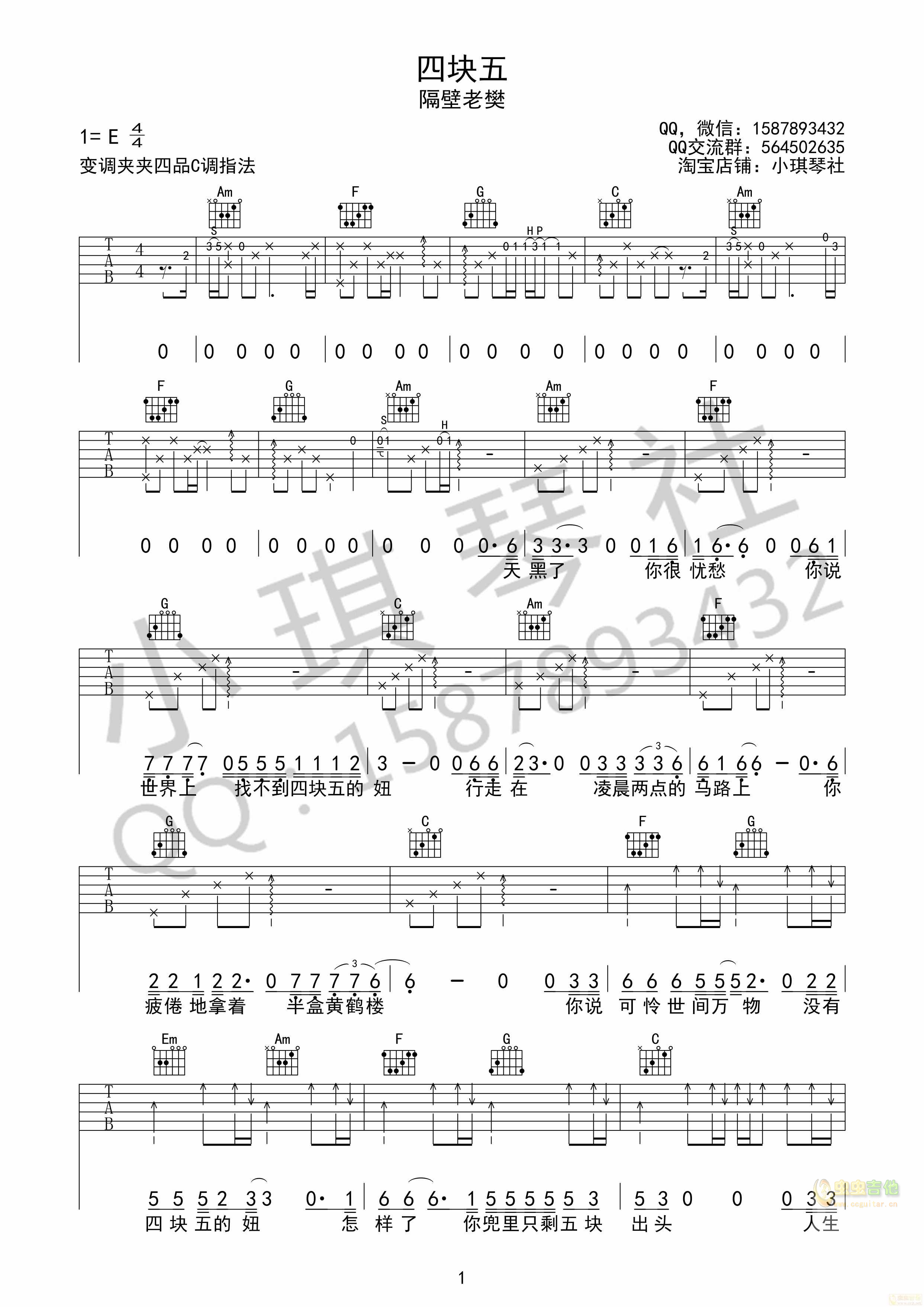 四块五吉他谱 - 吉他弹唱谱