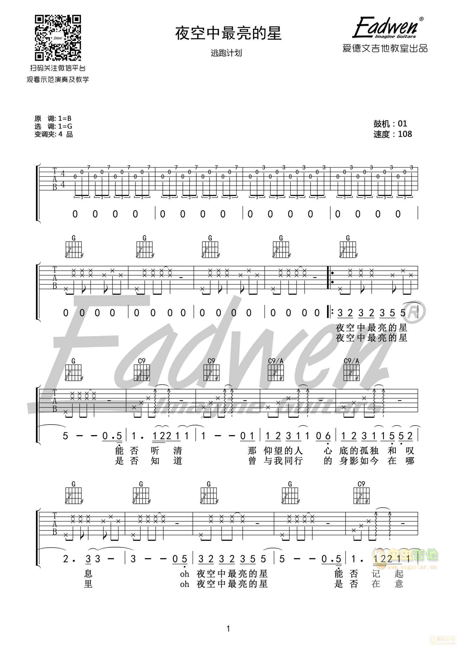 当前位置:琴谱网>吉他弹唱>夜空中最亮的星