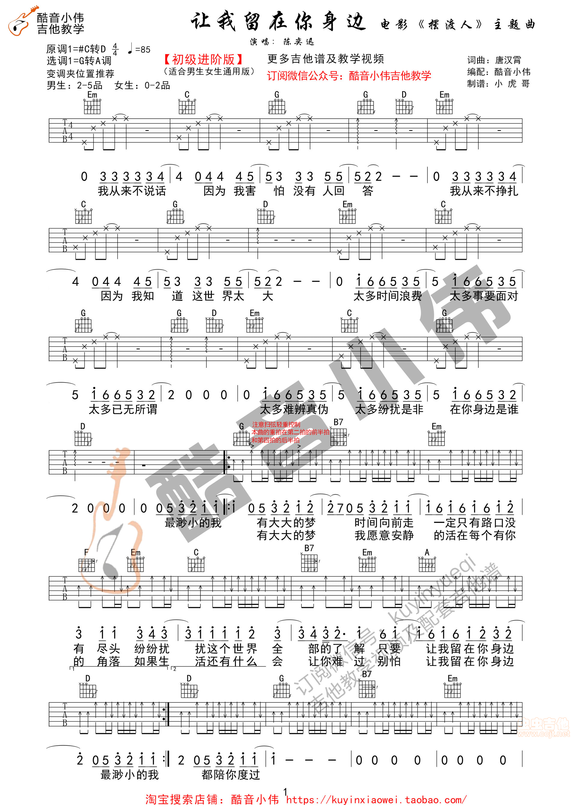 让我留在你身边吉他谱 - 吉他弹唱谱