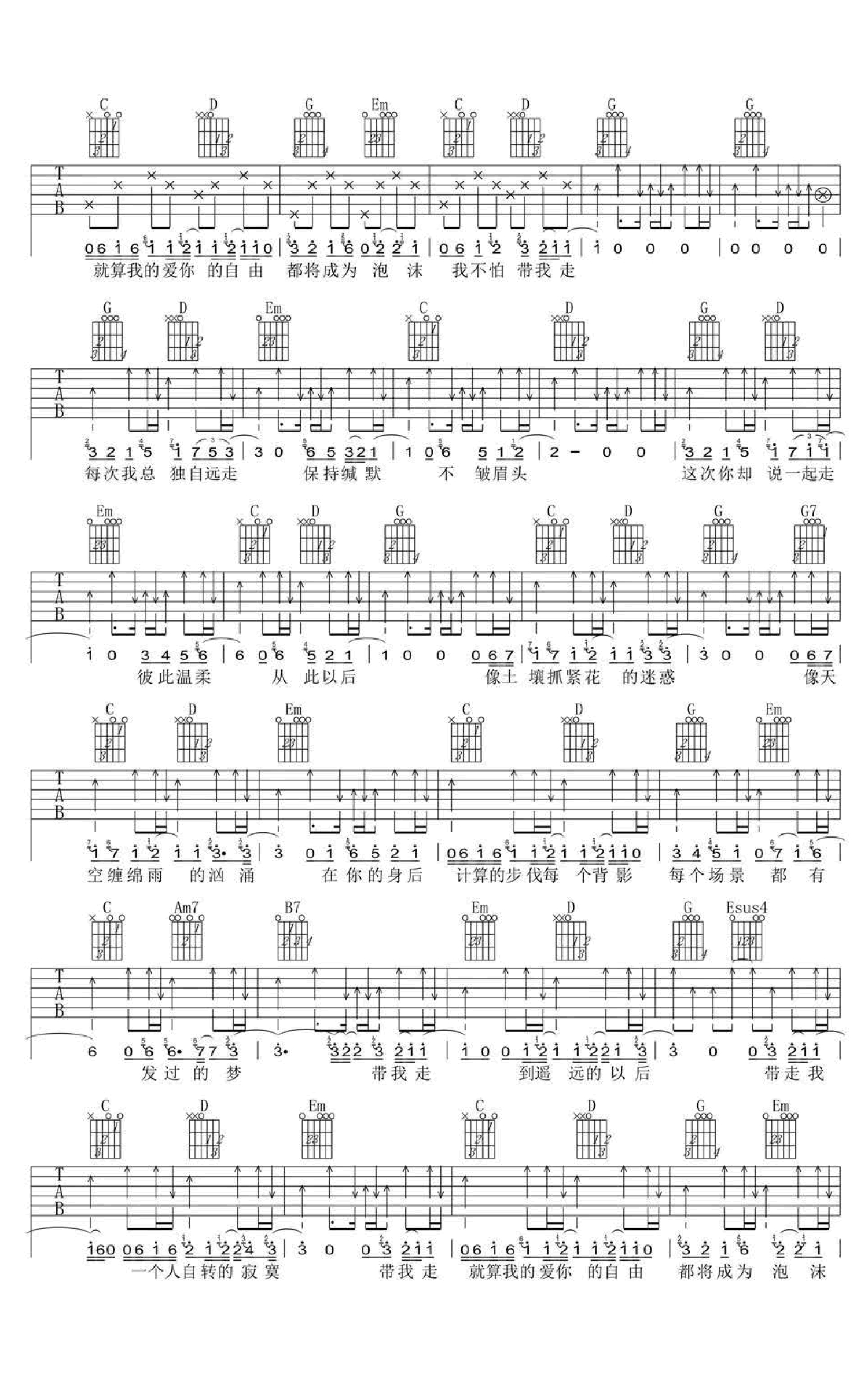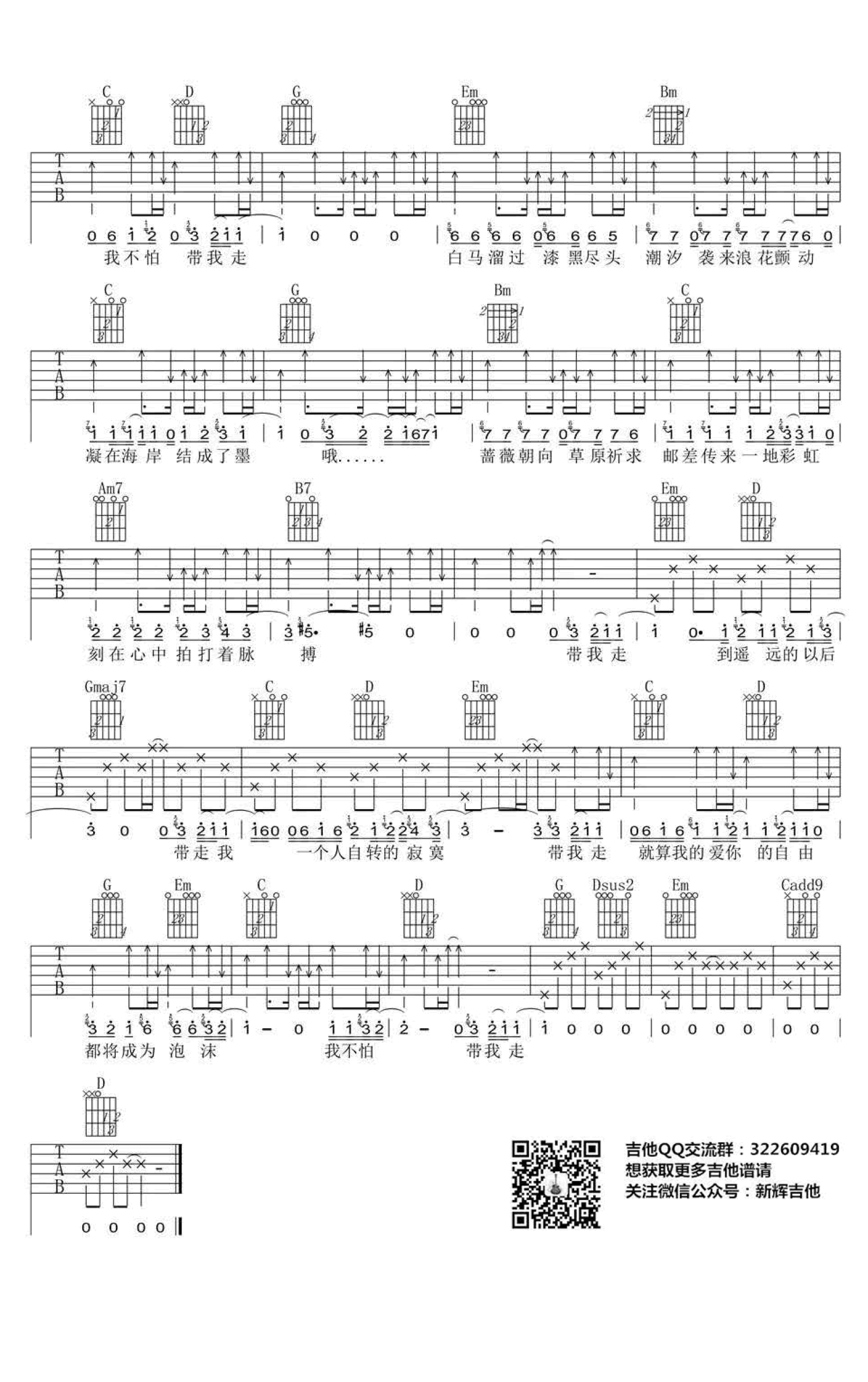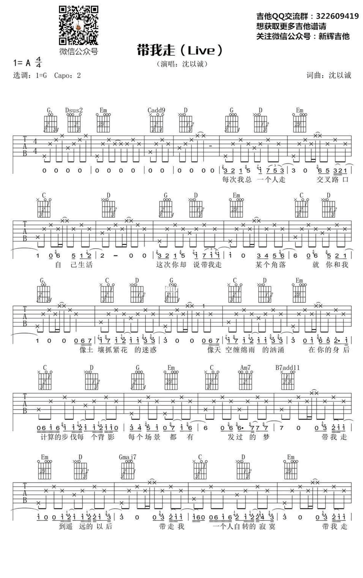 带我走吉他谱 - 沈以诚 - G调吉他弹唱谱