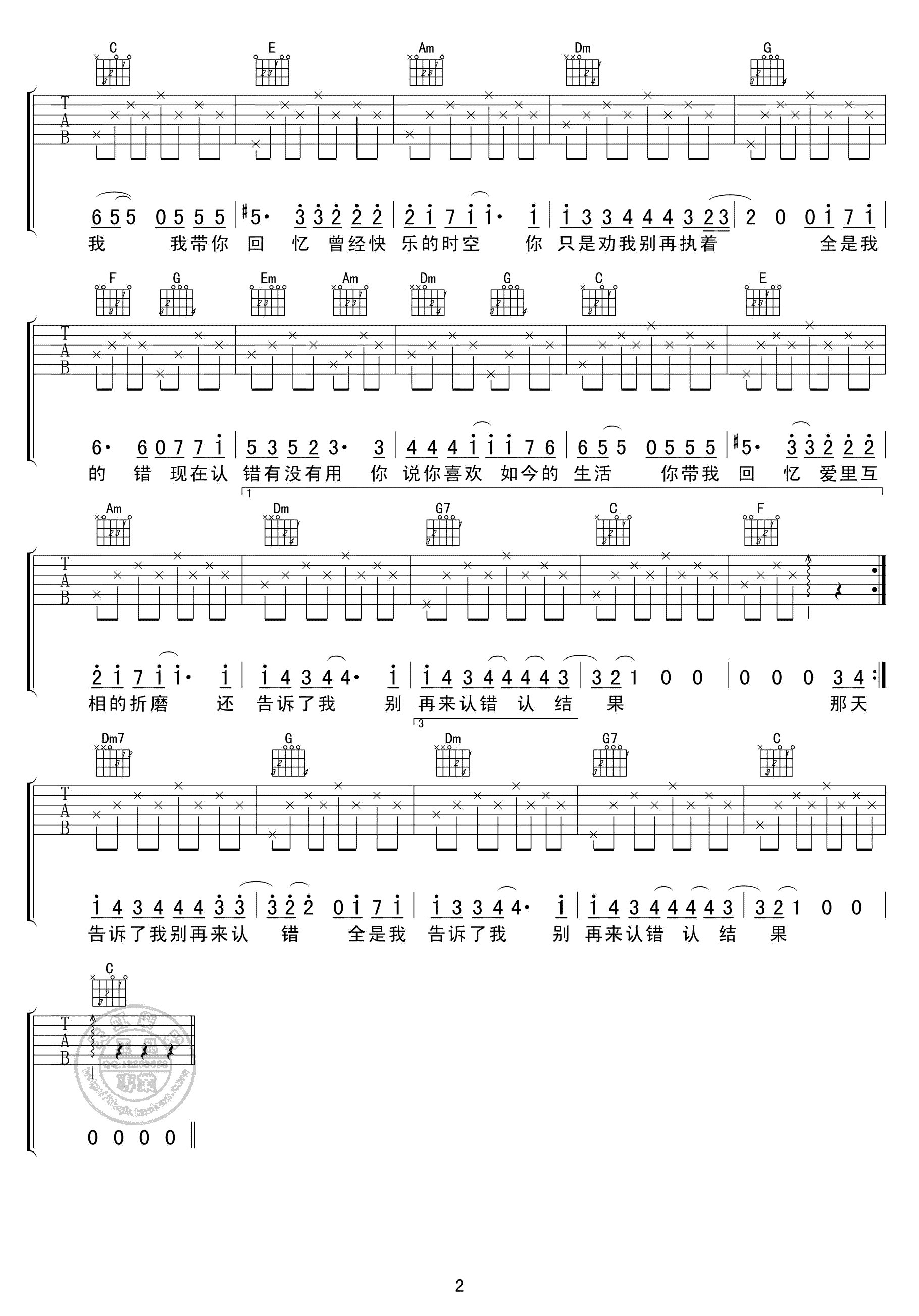 许嵩《认错吉他谱 - 许嵩 - 吉他弹唱谱