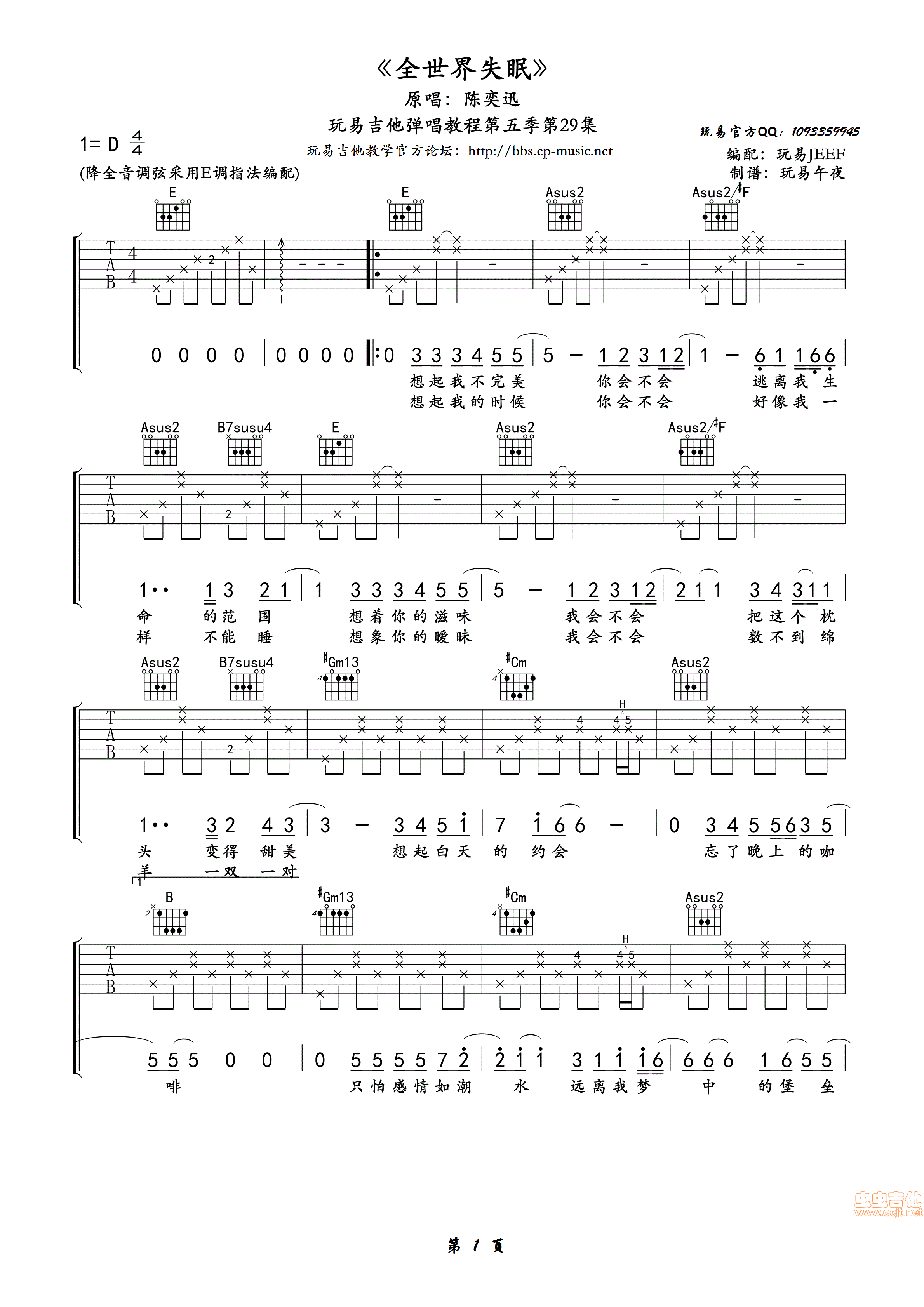 当前位置:琴谱网>吉他弹唱>全世界失眠