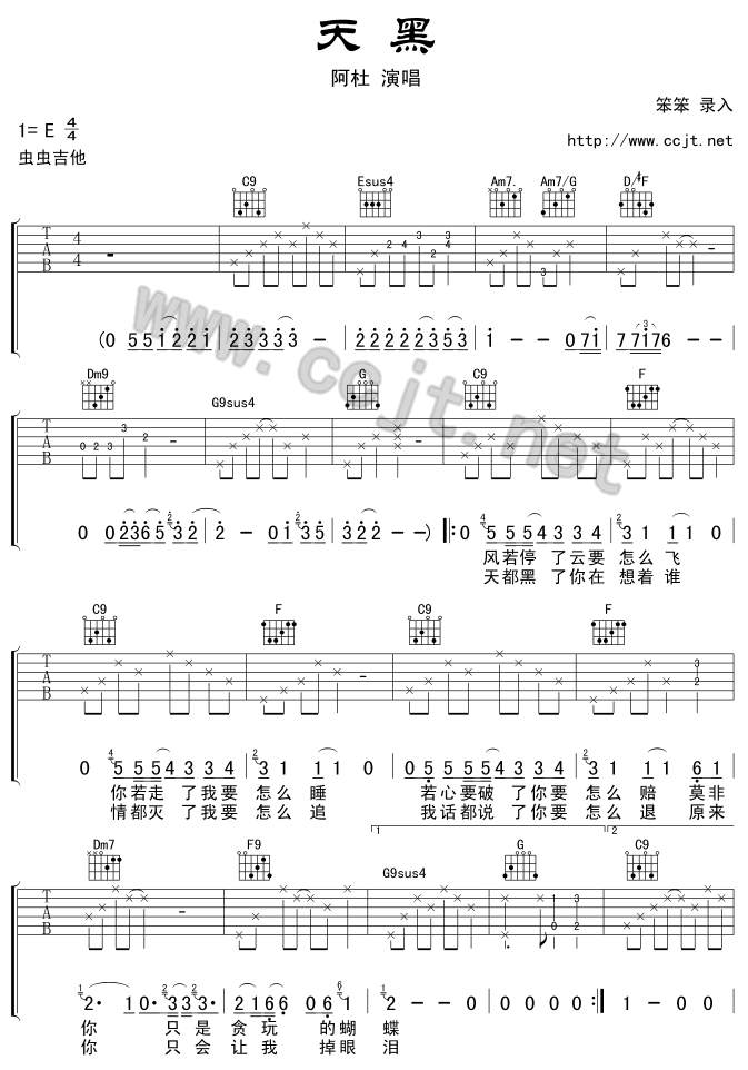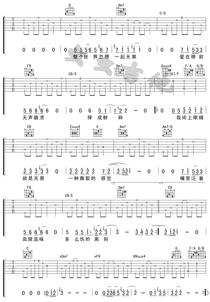 当前位置:琴谱网>吉他弹唱>天黑