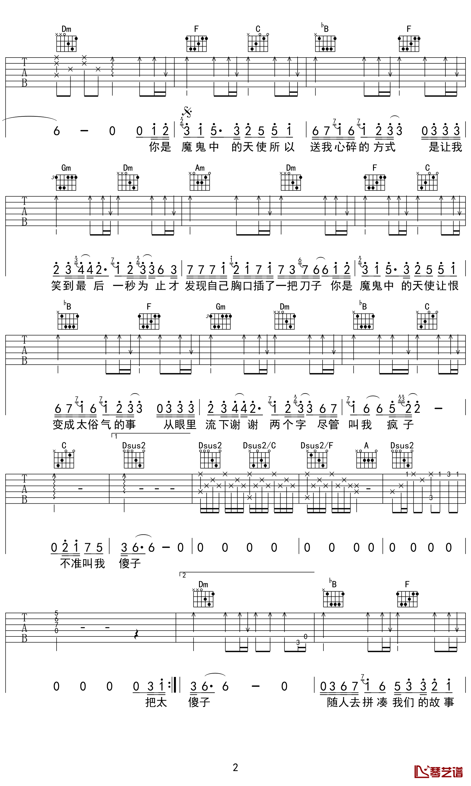 魔鬼中的天使吉他谱 - 田馥甄 - F调吉他弹唱谱