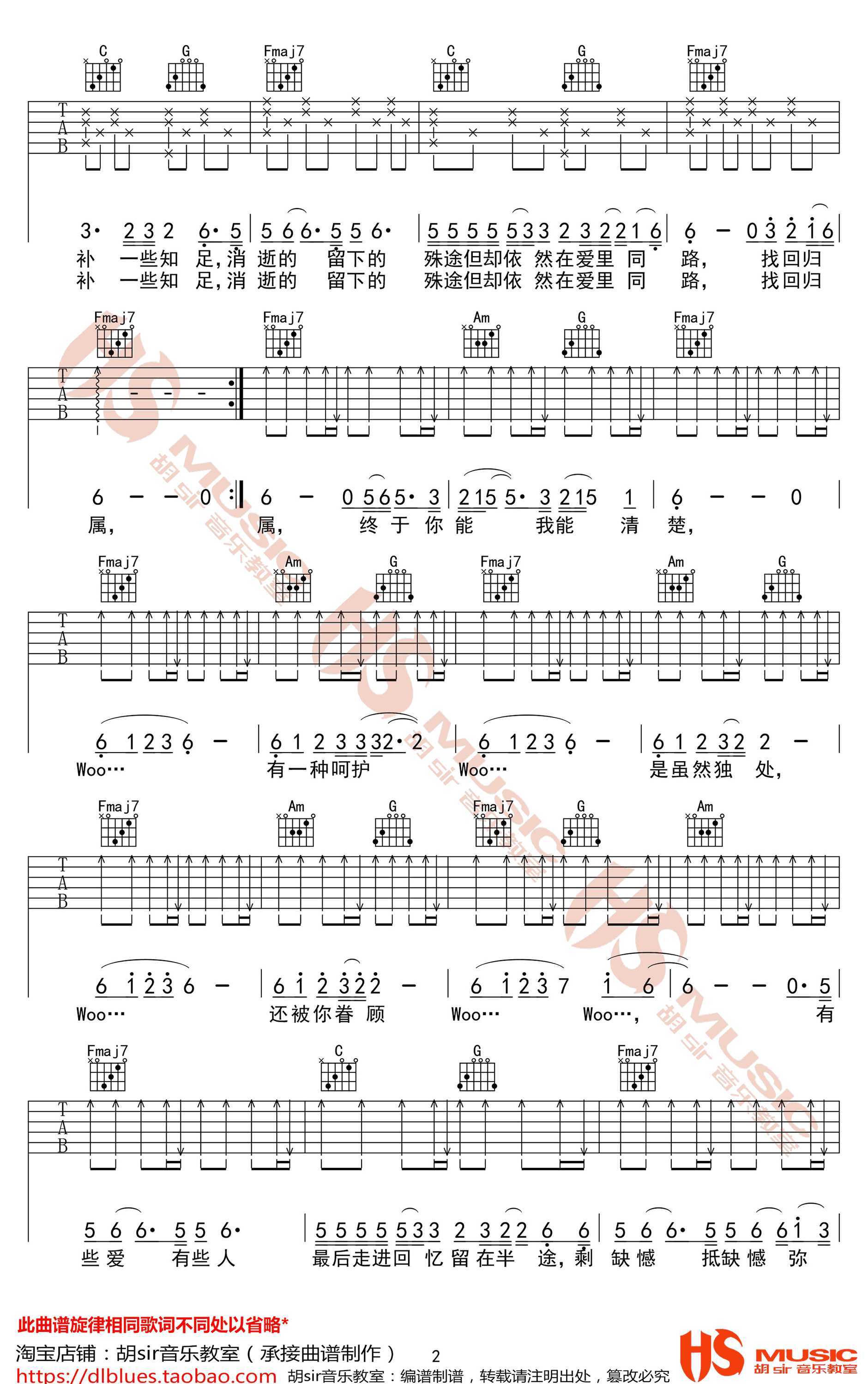 曲谱介绍: 半途吉他谱,蔡健雅的一首新歌,半途Halfway,C调指法编配,半途六线谱,高清弹唱图片谱,感谢胡SIR音乐教室出品。 《半途》是蔡健雅演唱的歌曲,由陈学圣作词,蔡健雅作曲,于2018年12月21日发行。 什么都有开始,有结束,把爱丢失在半途的结束是有些人的不珍惜。想要在下一段的爱情中弥补上一段的缺憾,只有不断努力,才能找到自己的归属,音乐如此,爱情也是。悠长的旋律,细腻的情感,仿佛一字一句唱给你听,让你逐渐沉入其中。
