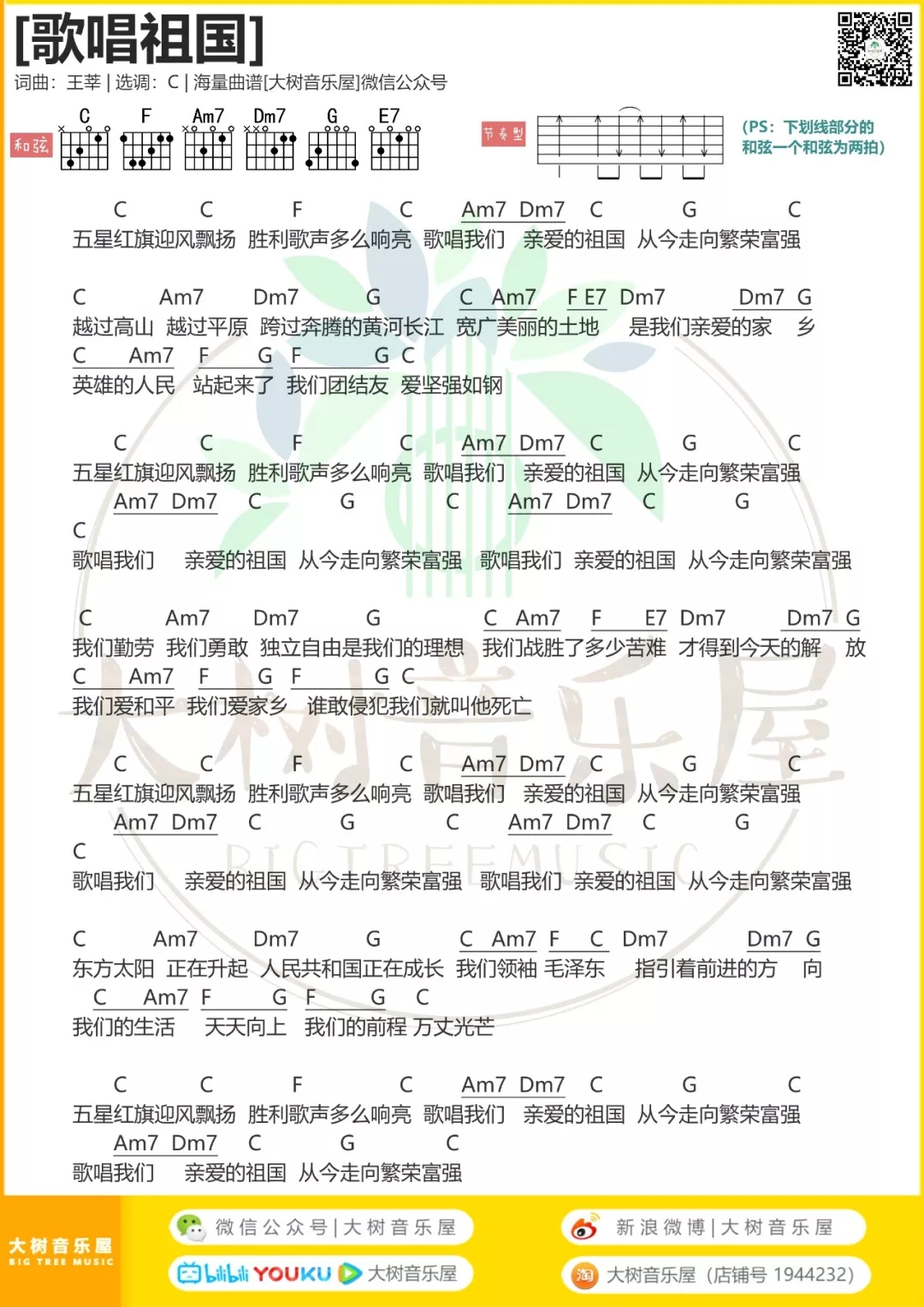 琴谱网为您精心推荐 歌唱祖国 高清图谱