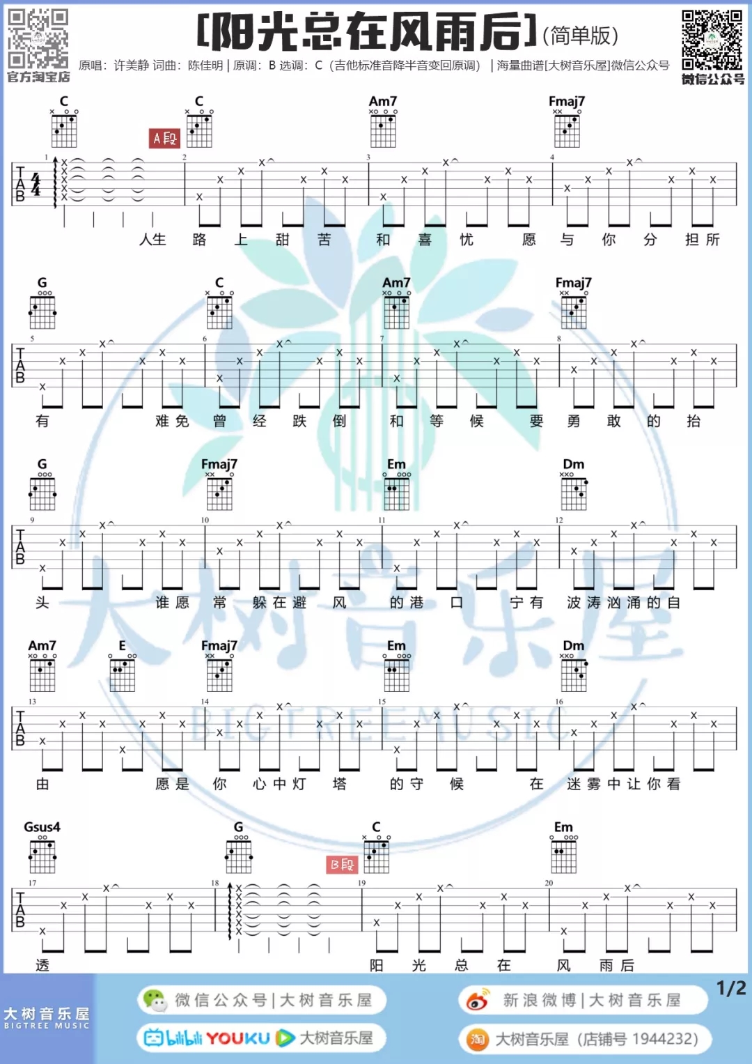 当前位置:琴谱网>吉他独奏>阳光总在风雨后