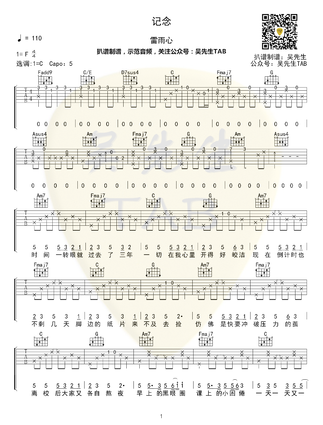记念吉他谱 - 雷雨心 - 吉他弹唱谱