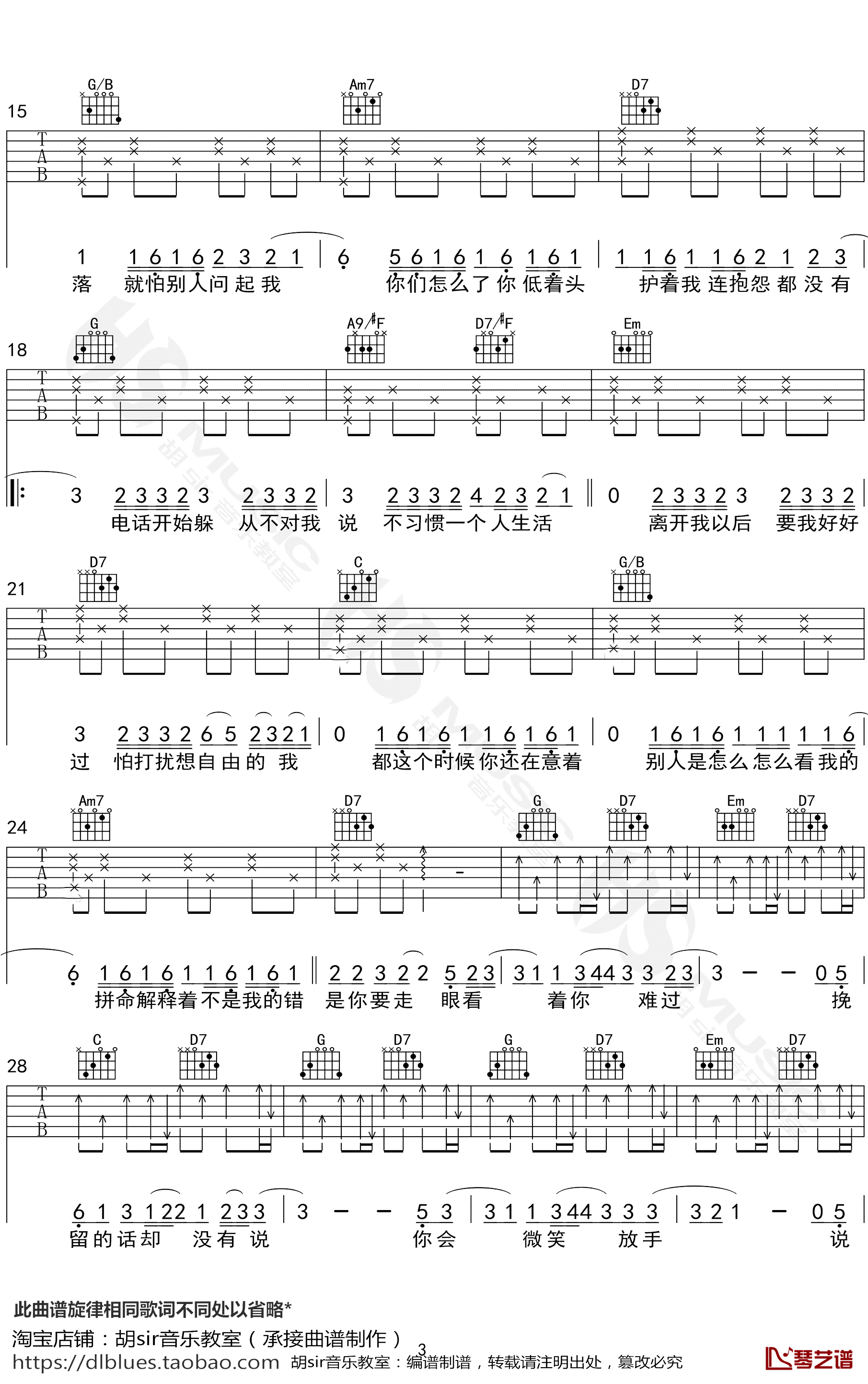 说好不哭吉他谱 - 周杰伦 - G调吉他独奏谱