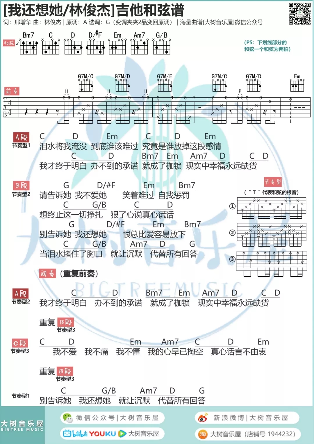 我还想她吉他谱 - 林俊杰 - 吉他独奏谱