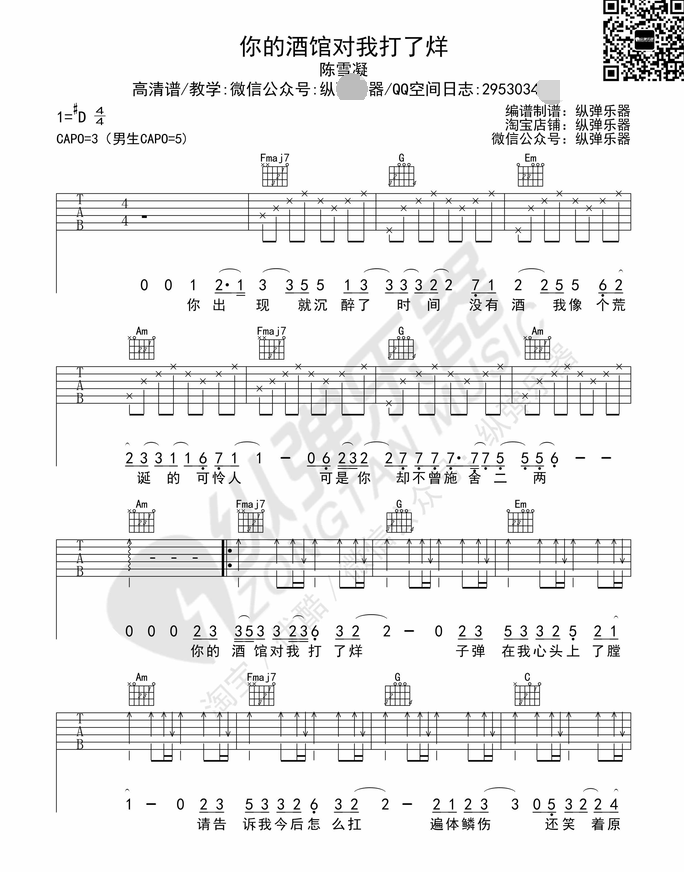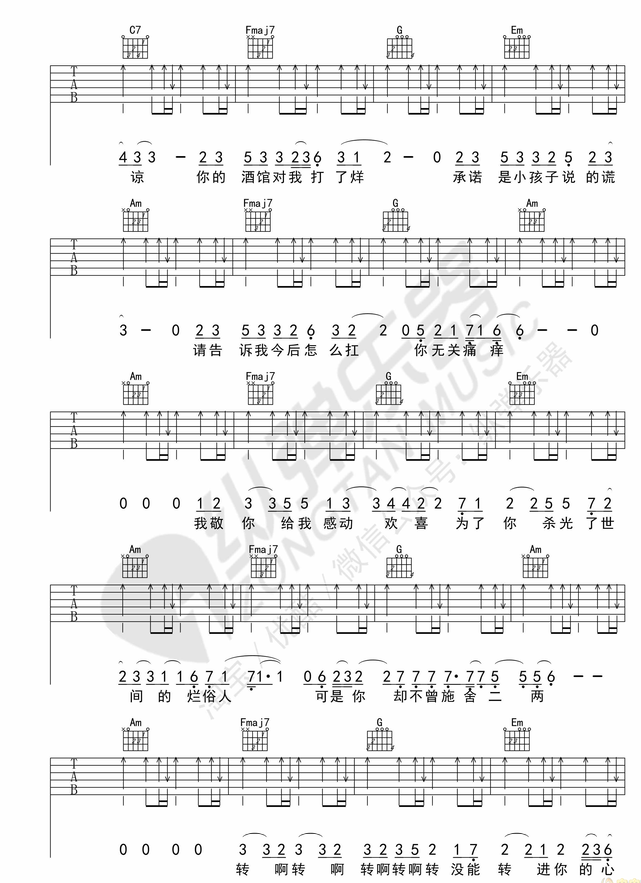 《你的酒馆对我打了烊吉他谱 - 吉他弹唱谱