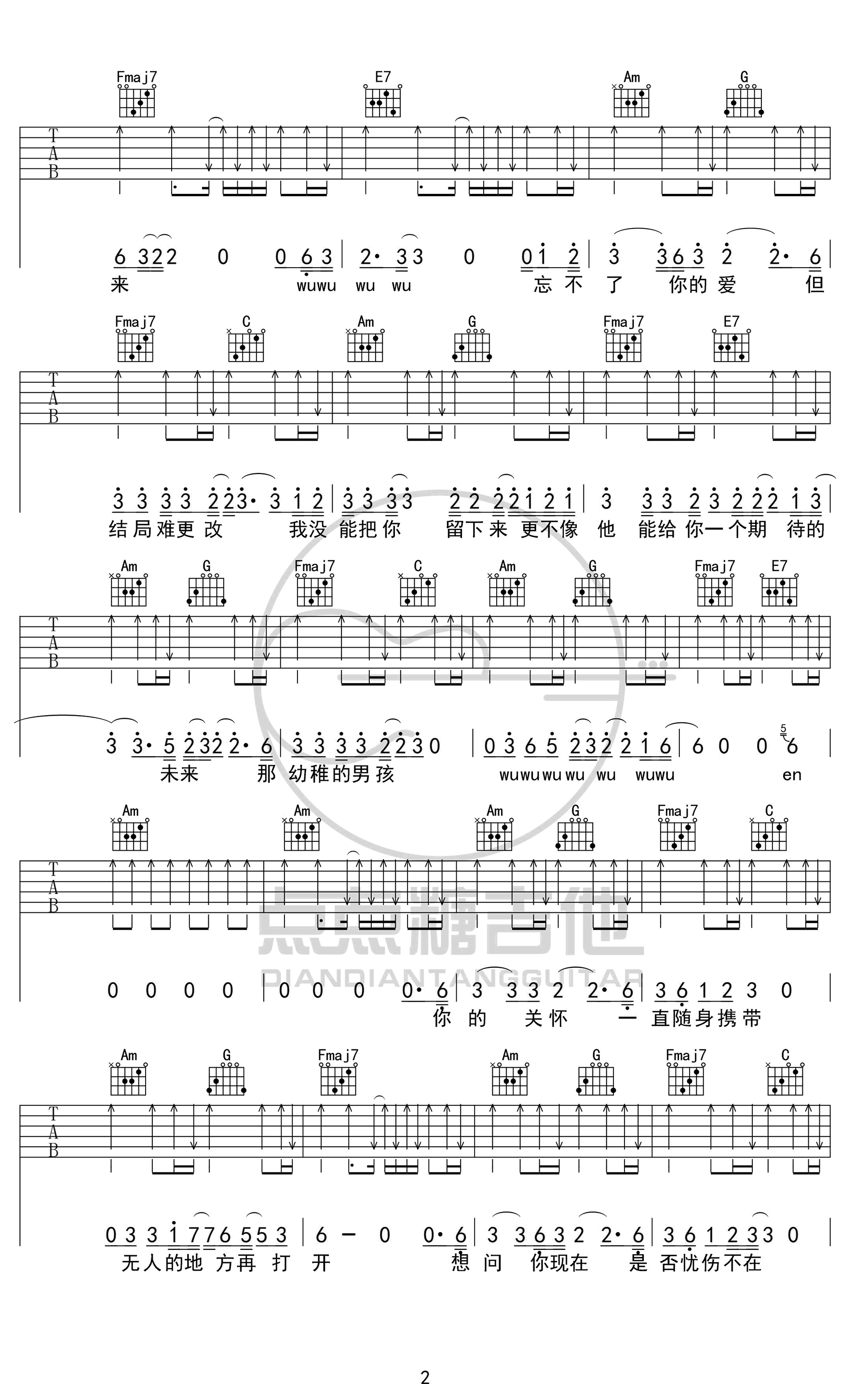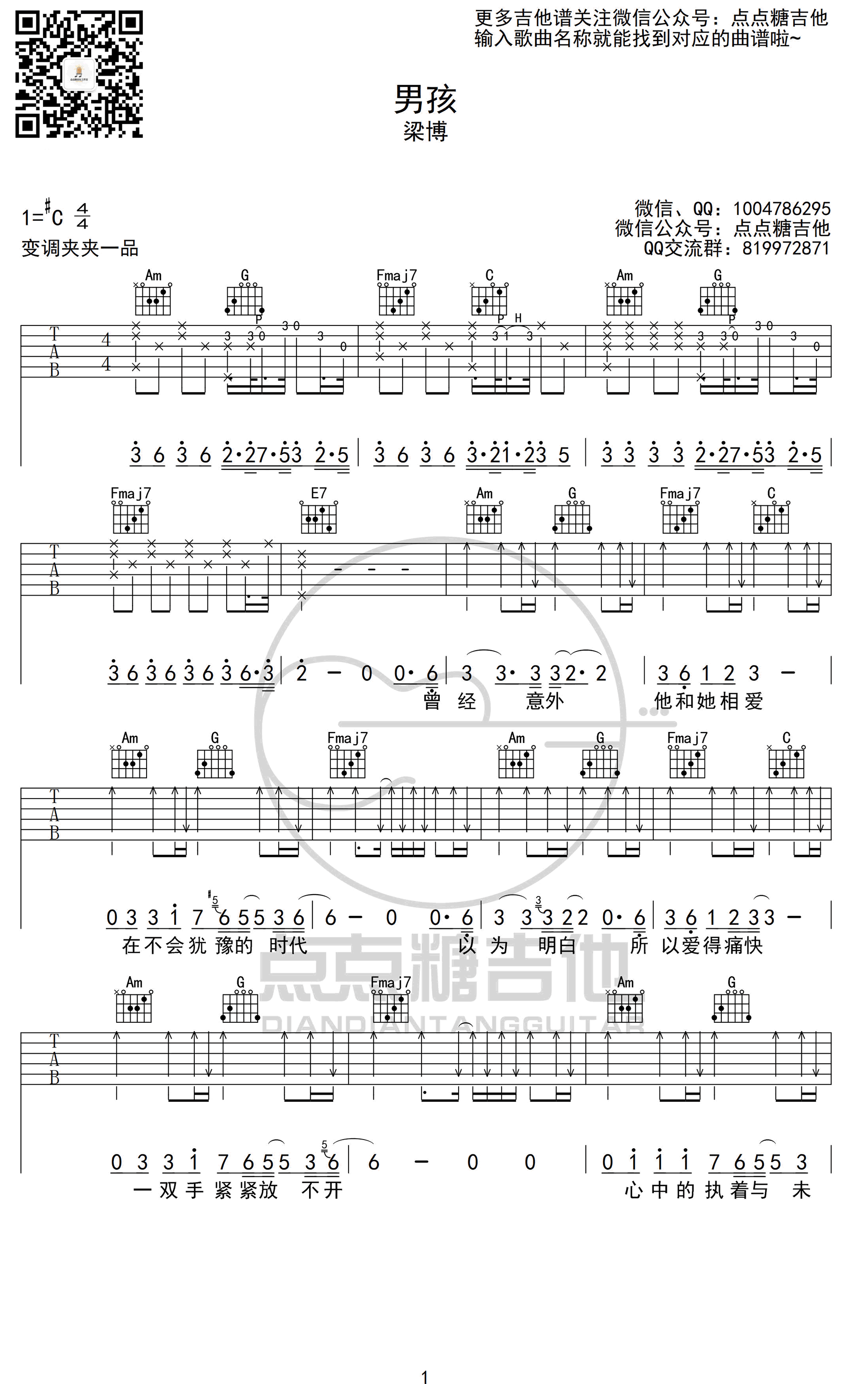 男孩吉他谱 - 梁博 - 吉他弹唱谱