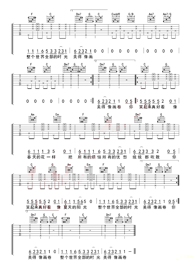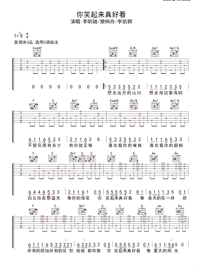 你笑起来真好看吉他谱 - 吉他弹唱谱