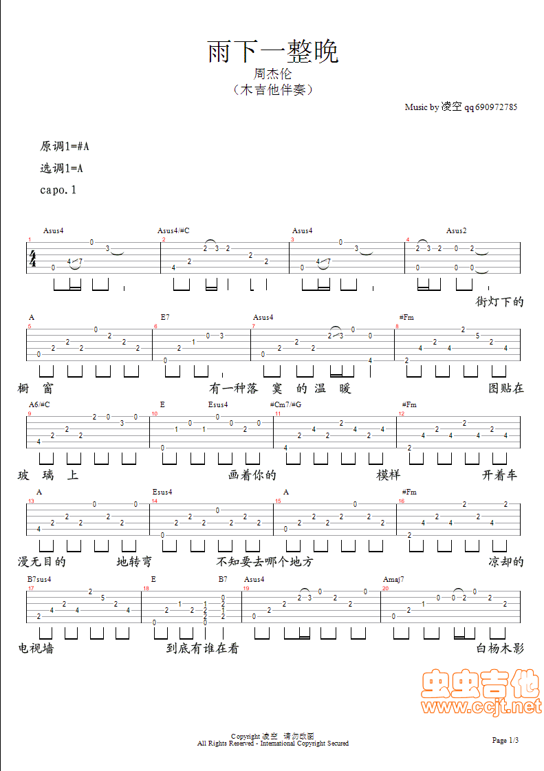 雨下一整晚吉他谱 - 吉他弹唱谱
