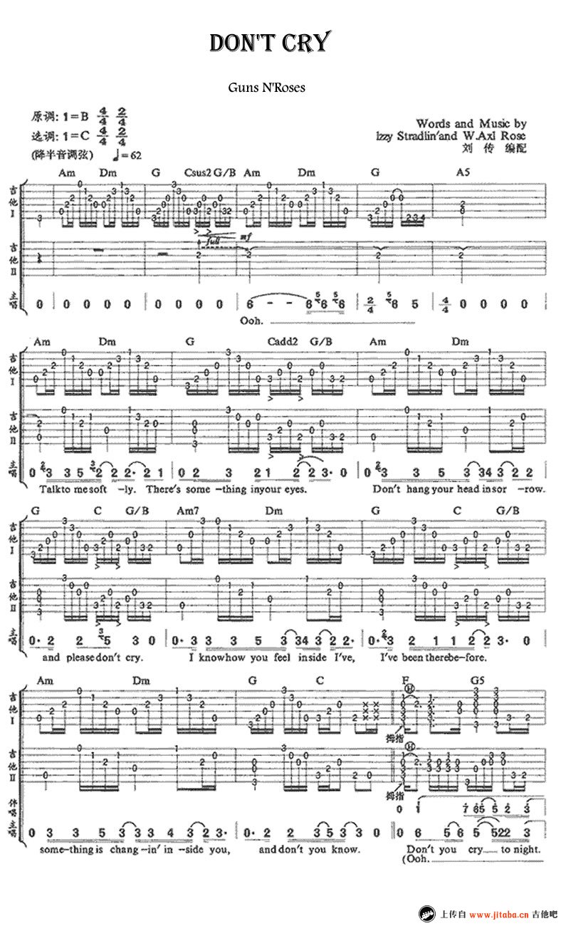 曲谱介绍: Guns N'Roses(枪炮与玫瑰)《Don't Cry》吉他谱