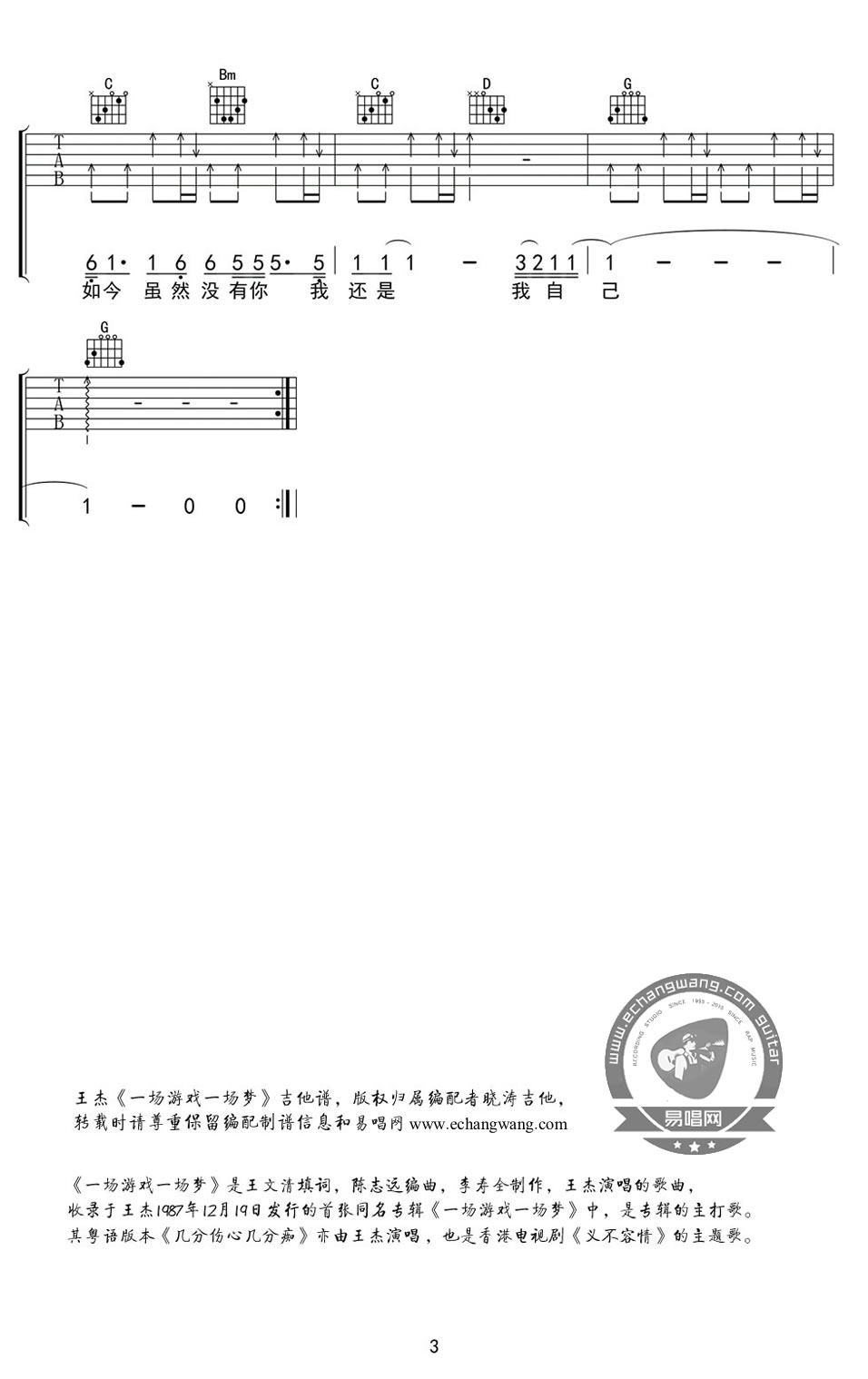 当前位置:琴谱网>吉他弹唱>一场游戏一场梦