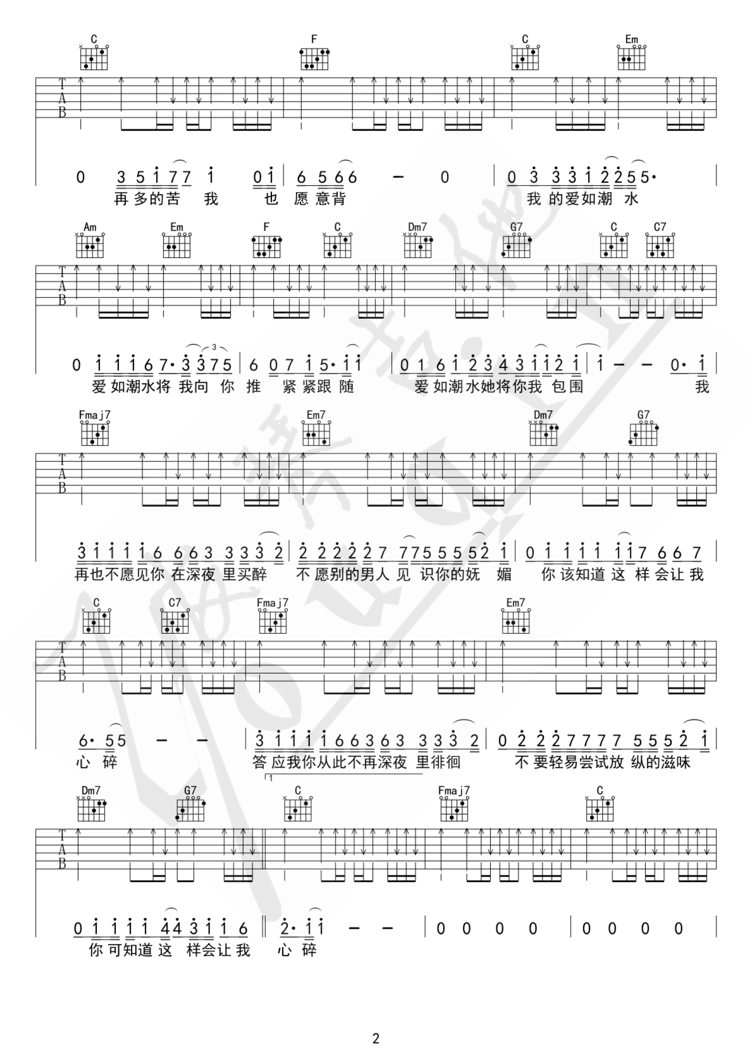 当前位置:琴谱网>吉他弹唱>爱如潮水