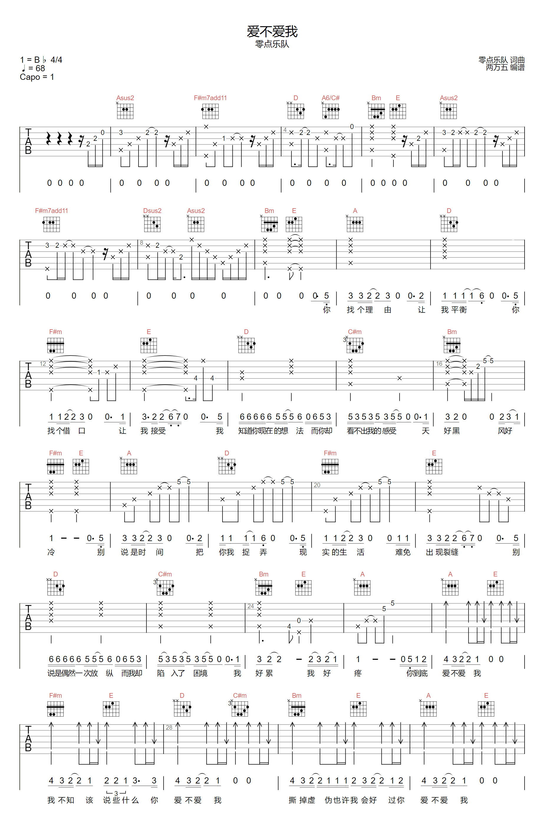 爱不爱我吉他谱 - 零点乐队 - A调吉他弹唱谱 - 原版