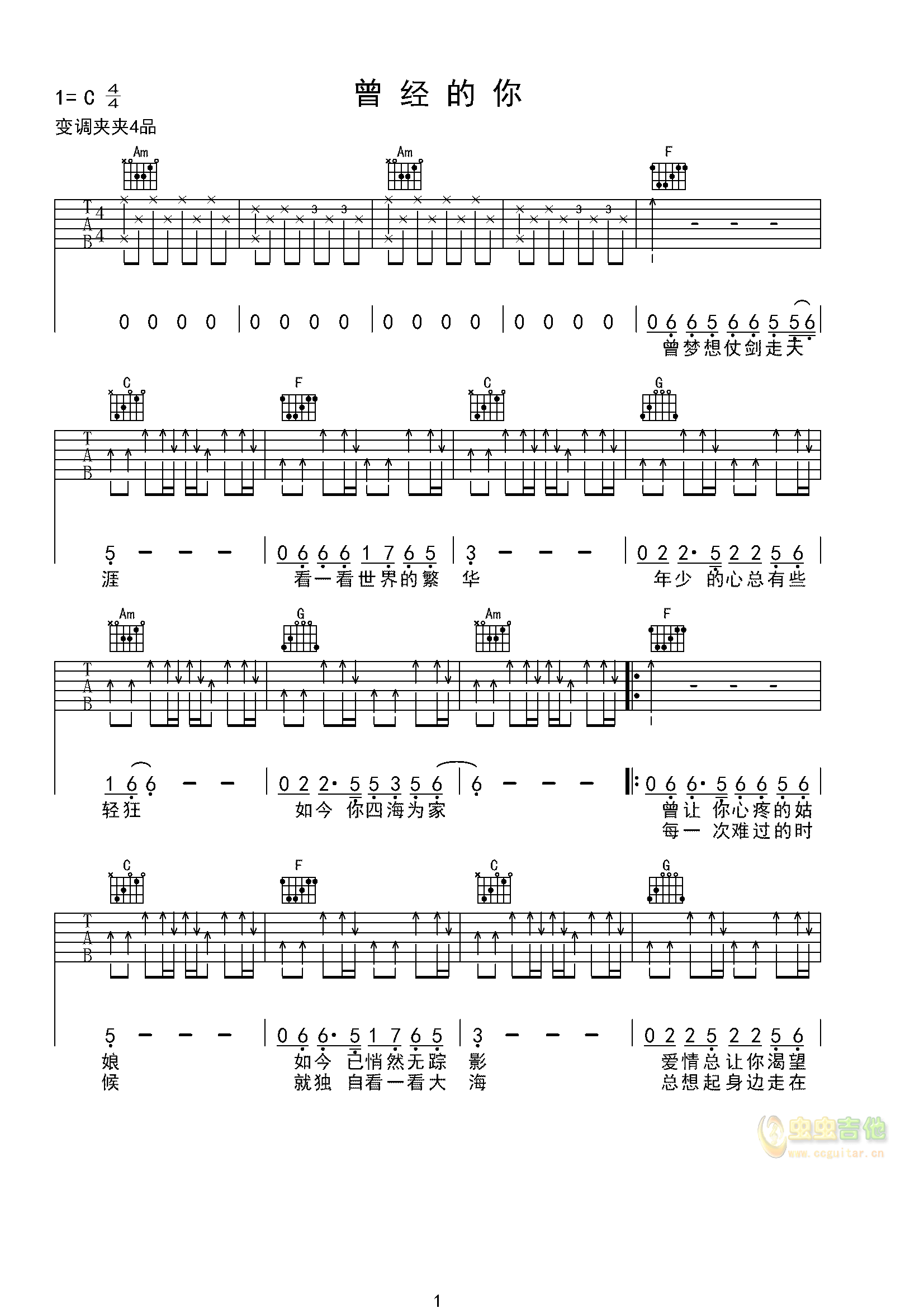 曾经的你吉他谱 - 吉他弹唱谱