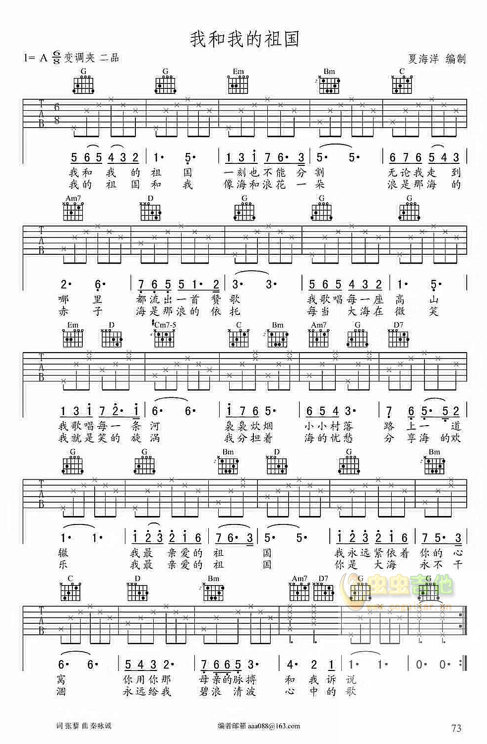 《我和我的祖国-吉他谱 - 《我和我的祖国 - 吉他弹唱谱