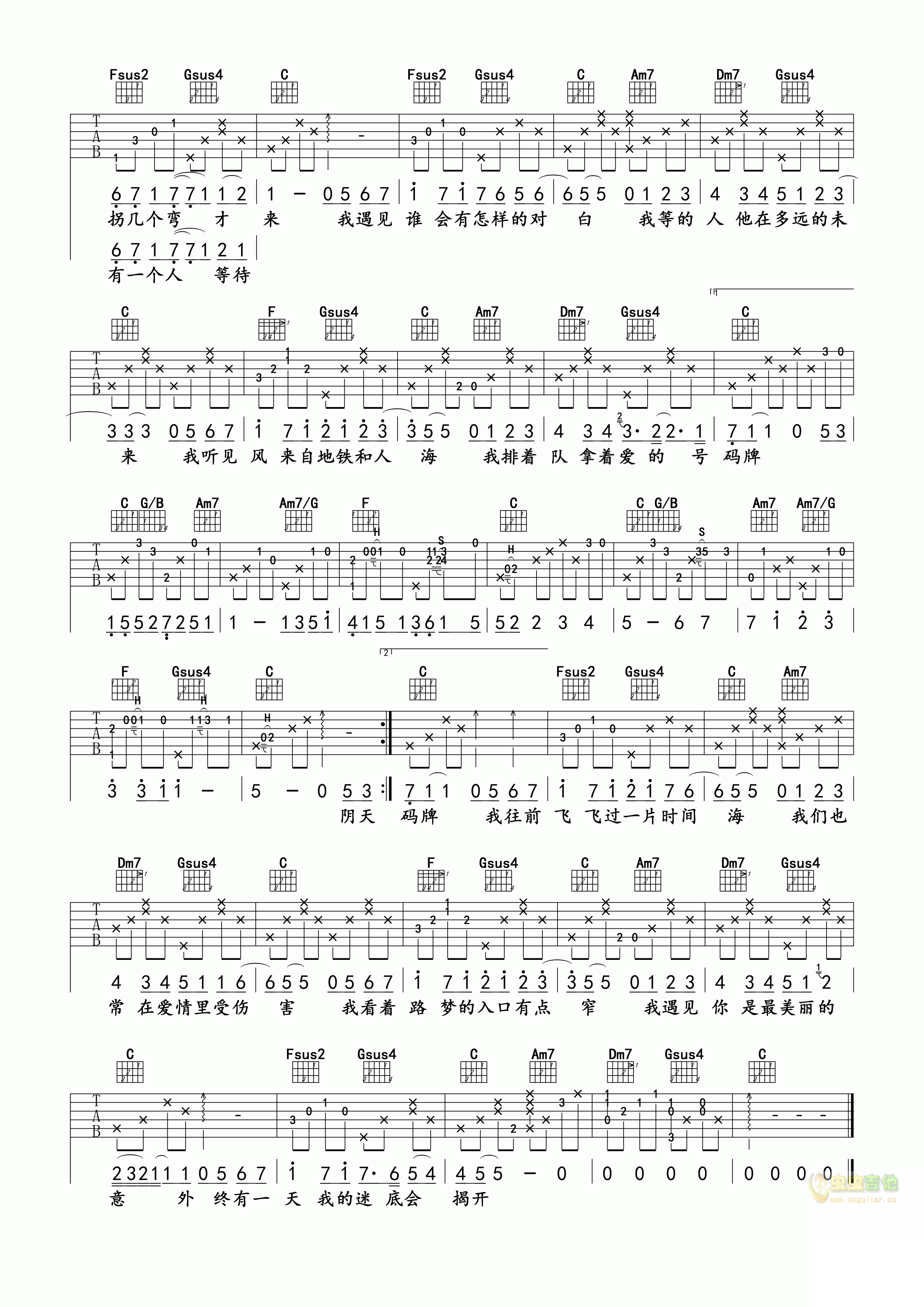 遇见吉他谱 - 吉他弹唱谱