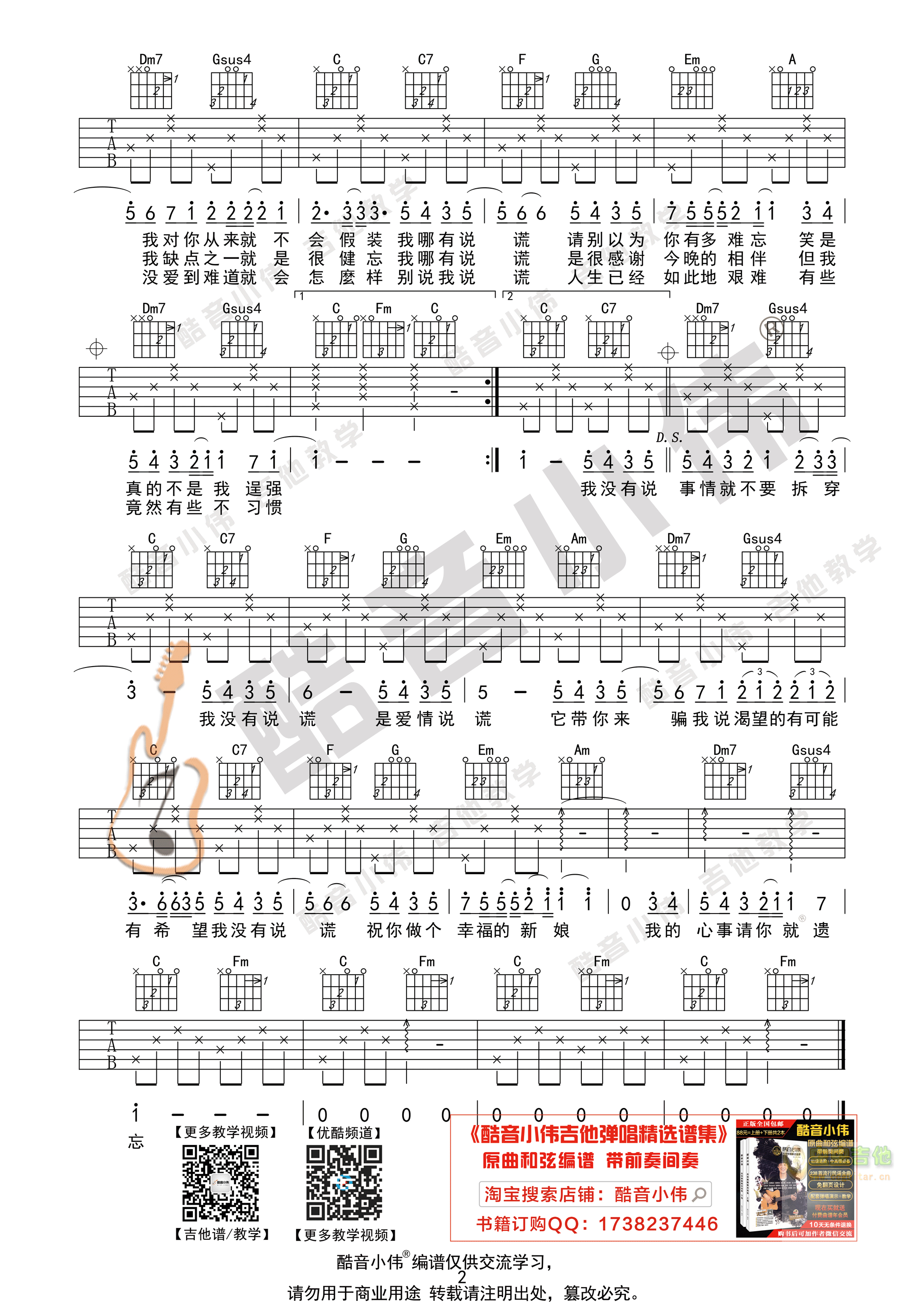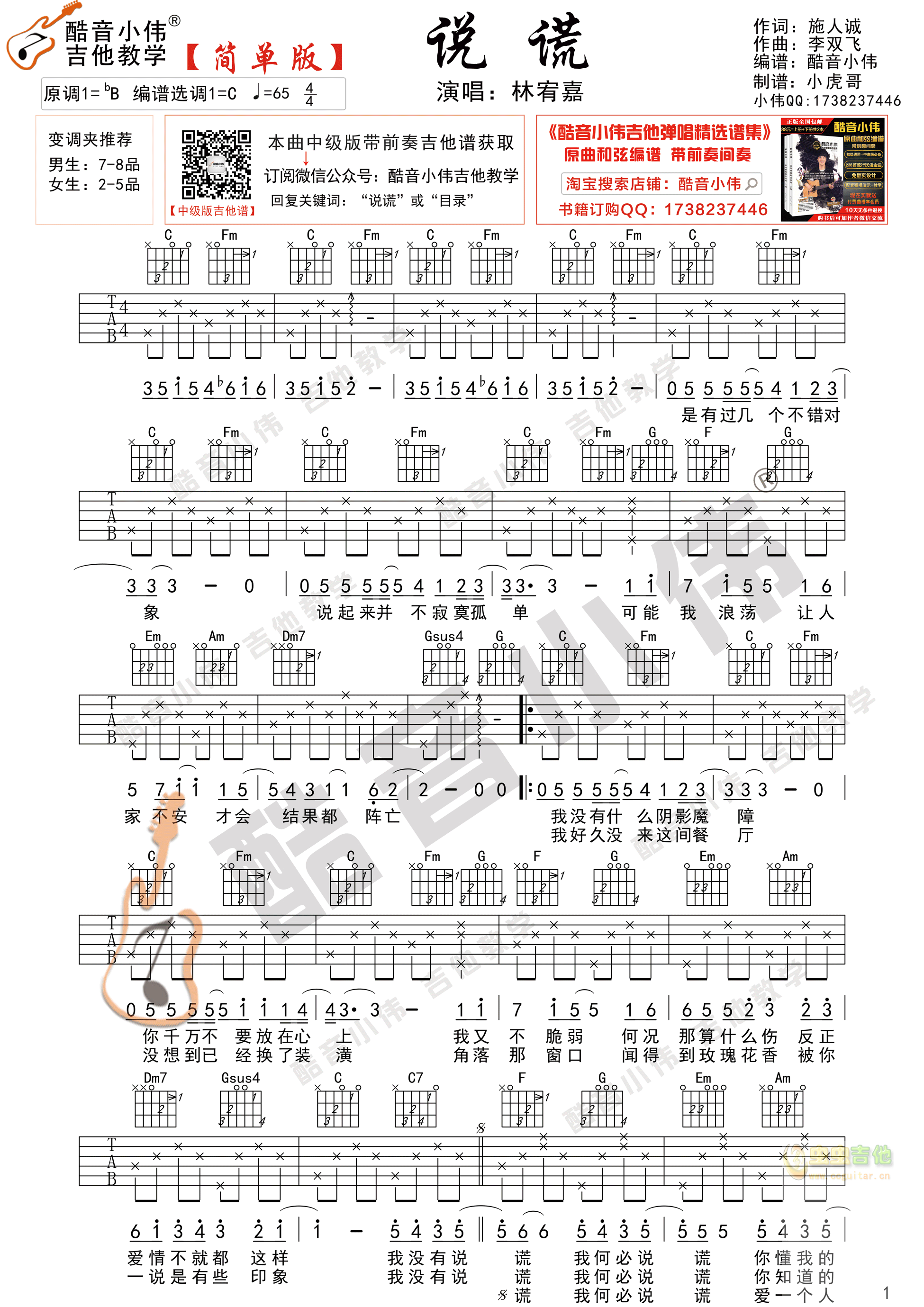 曲谱介绍:   《说谎》是李双飞谱曲,施人诚填词,由林宥嘉演唱的一首情歌,同时也是电视剧《杜拉拉升职记》插曲和电影《针尖上的天使》的主题曲。该歌收录在林宥嘉2009年10月30日发行的专辑《感官/世界》中。   2011年该歌曲先后获得第三十三届十大中文金曲奖优秀流行国语歌曲奖金奖和第11届音乐风云榜最佳歌曲奖等奖项。