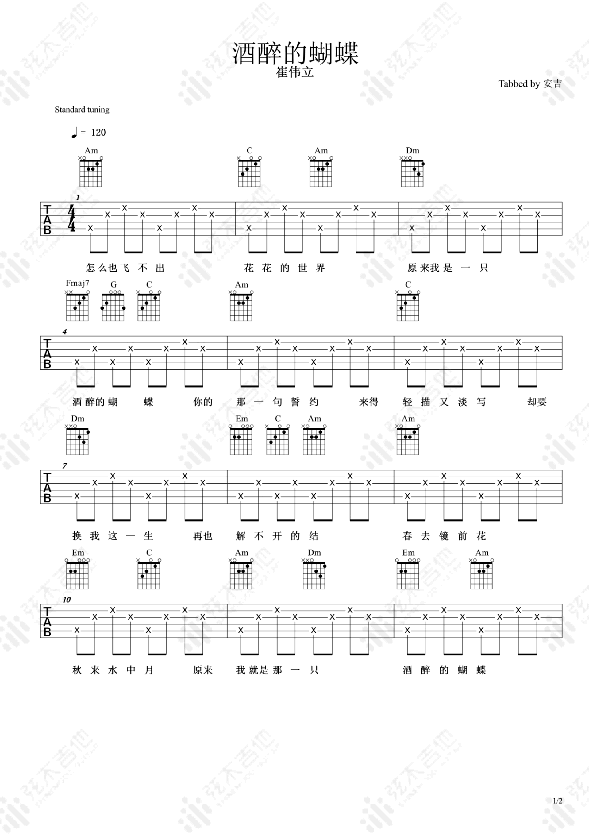 酒醉的蝴蝶吉他谱 - 崔伟立 - 吉他弹唱谱