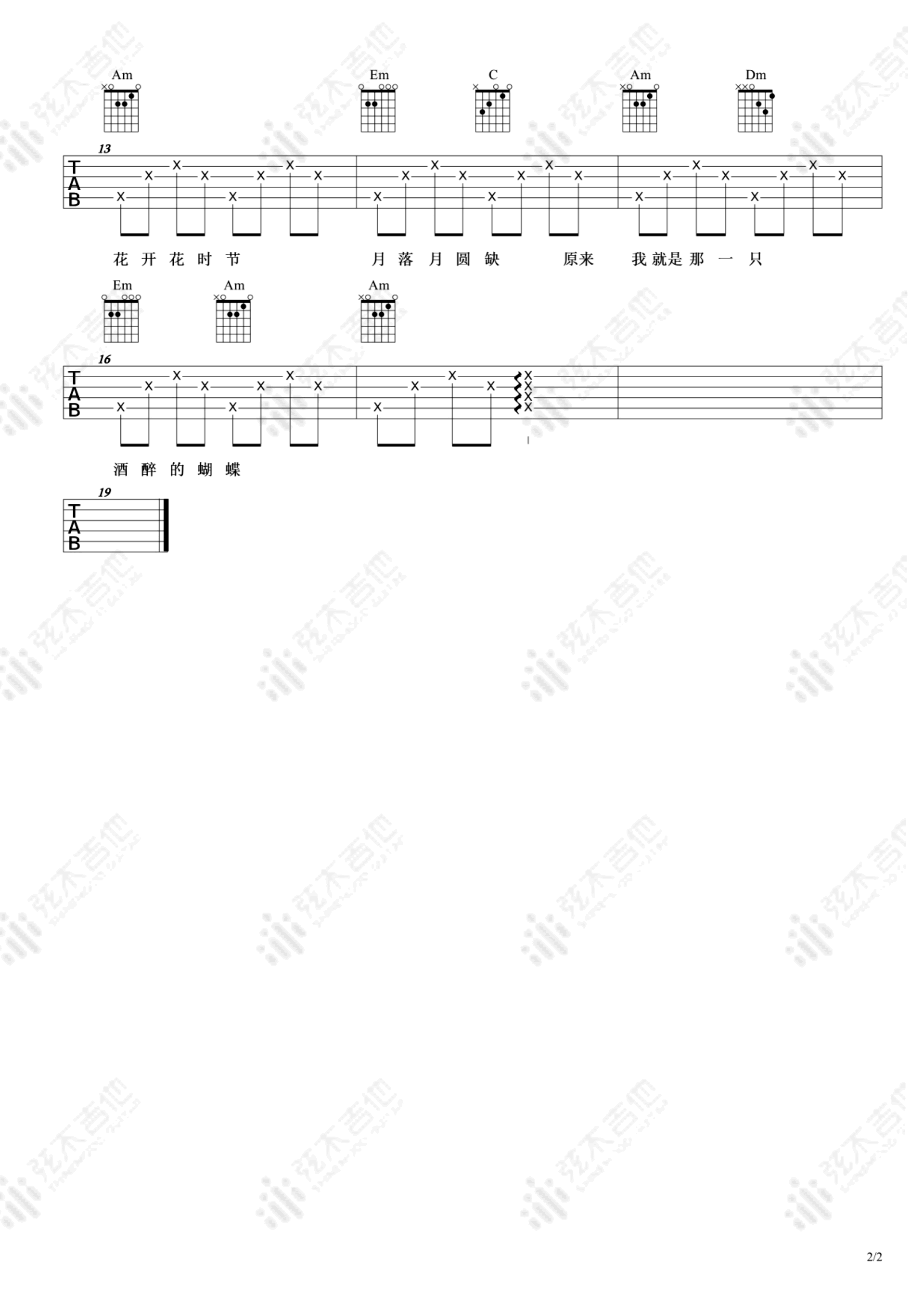 当前位置:琴谱网>吉他弹唱>酒醉的蝴蝶