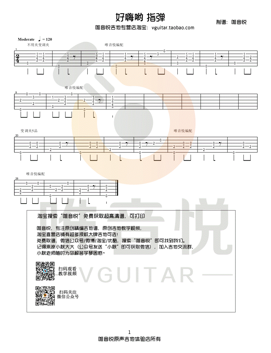 当前位置:琴谱网>吉他独奏>好嗨哟