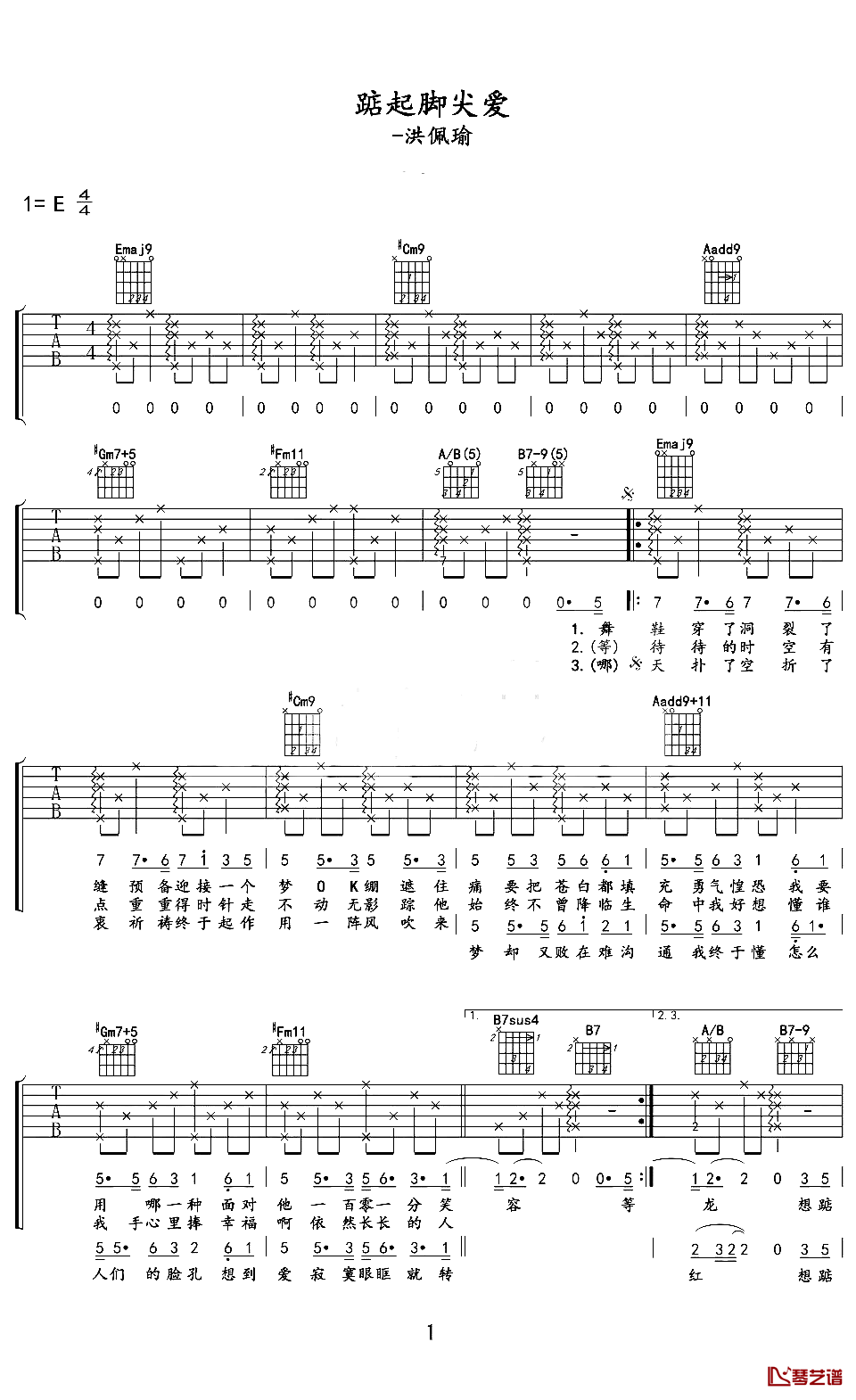 踮起脚尖爱吉他谱 - 洪佩瑜 - E调吉他弹唱谱