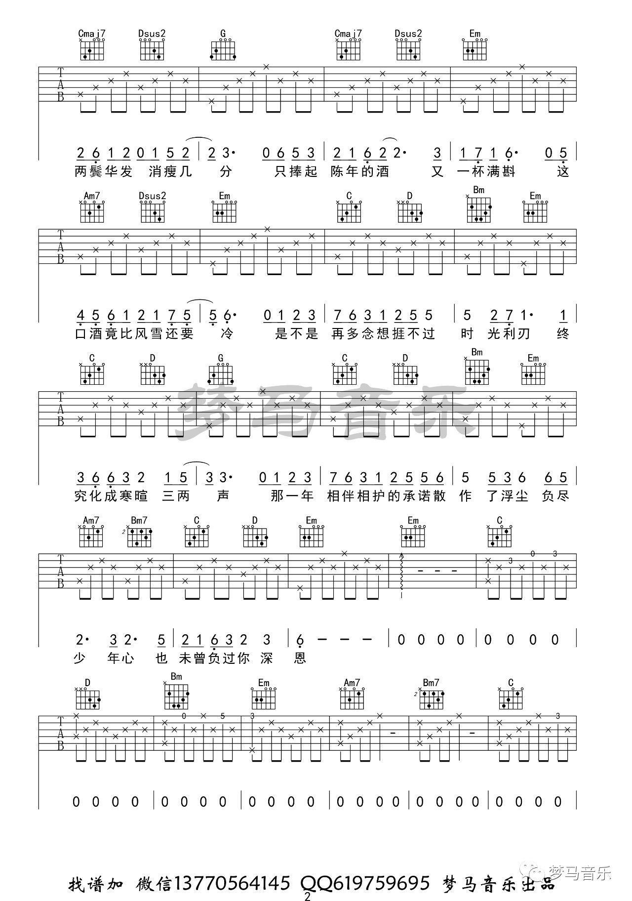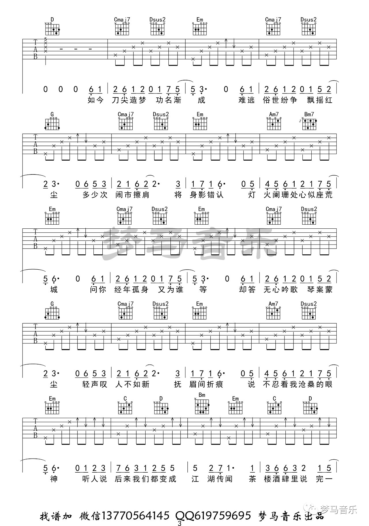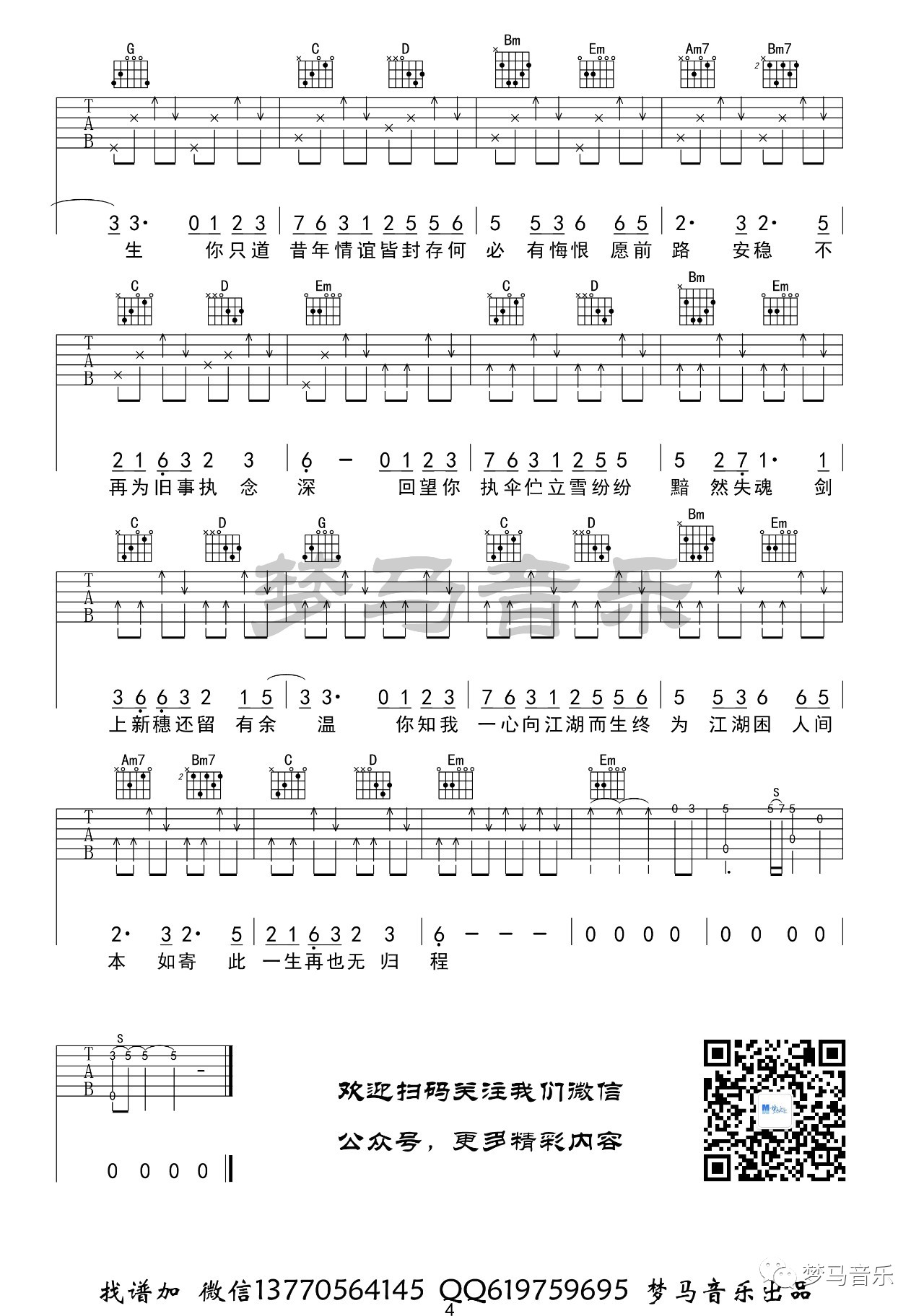 曲谱介绍: 《如寄》是手游《剑网三》里面的一首经典作品,二次元古风风格。这首歌唯一的难点就是前奏的指法相对比较复杂,大家需要多看视频多练习。歌曲好听又好唱,喜欢古风歌的小伙伴不能错过哦! 吉他谱和演示来自梦马音乐编配,G调指法版。