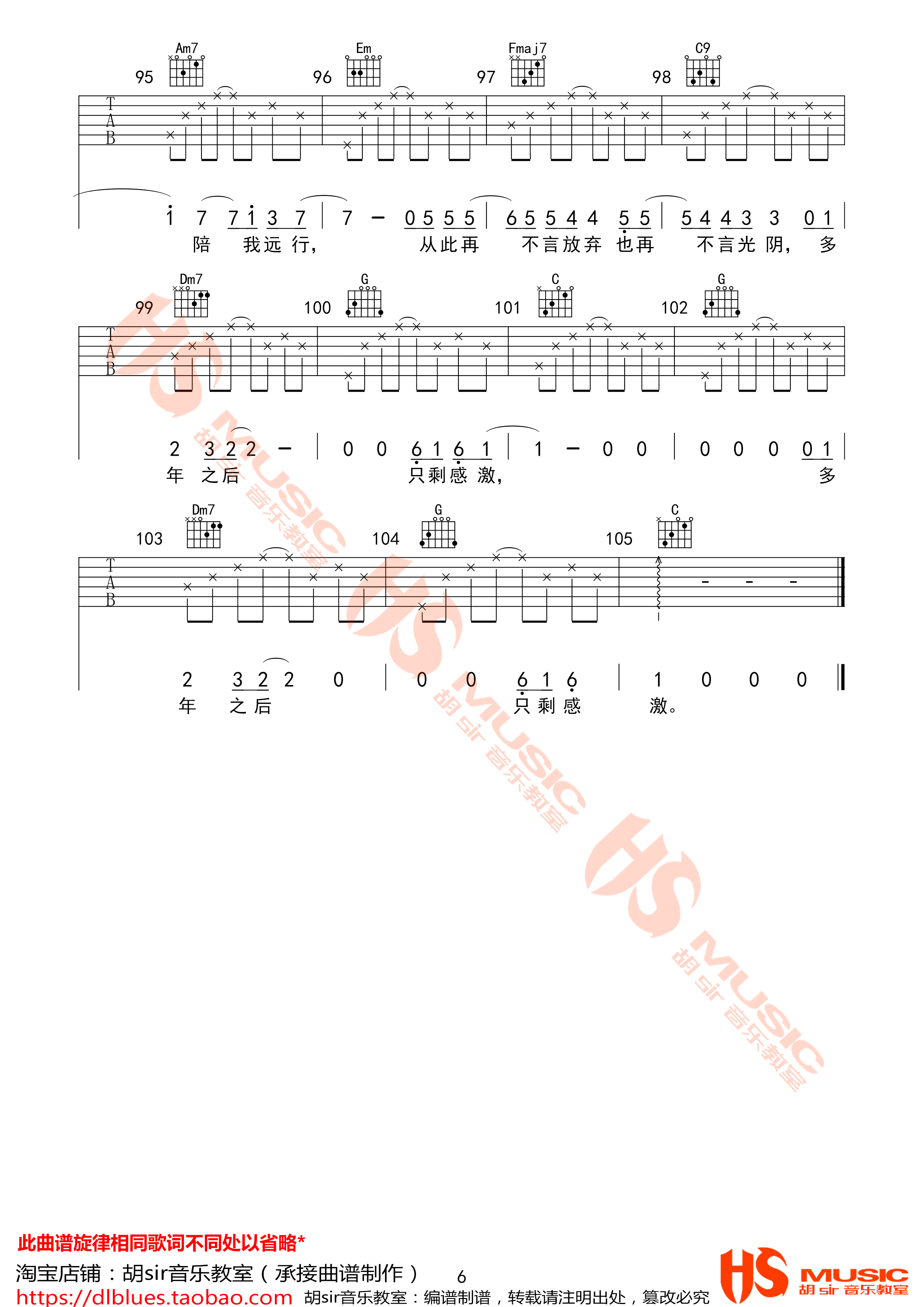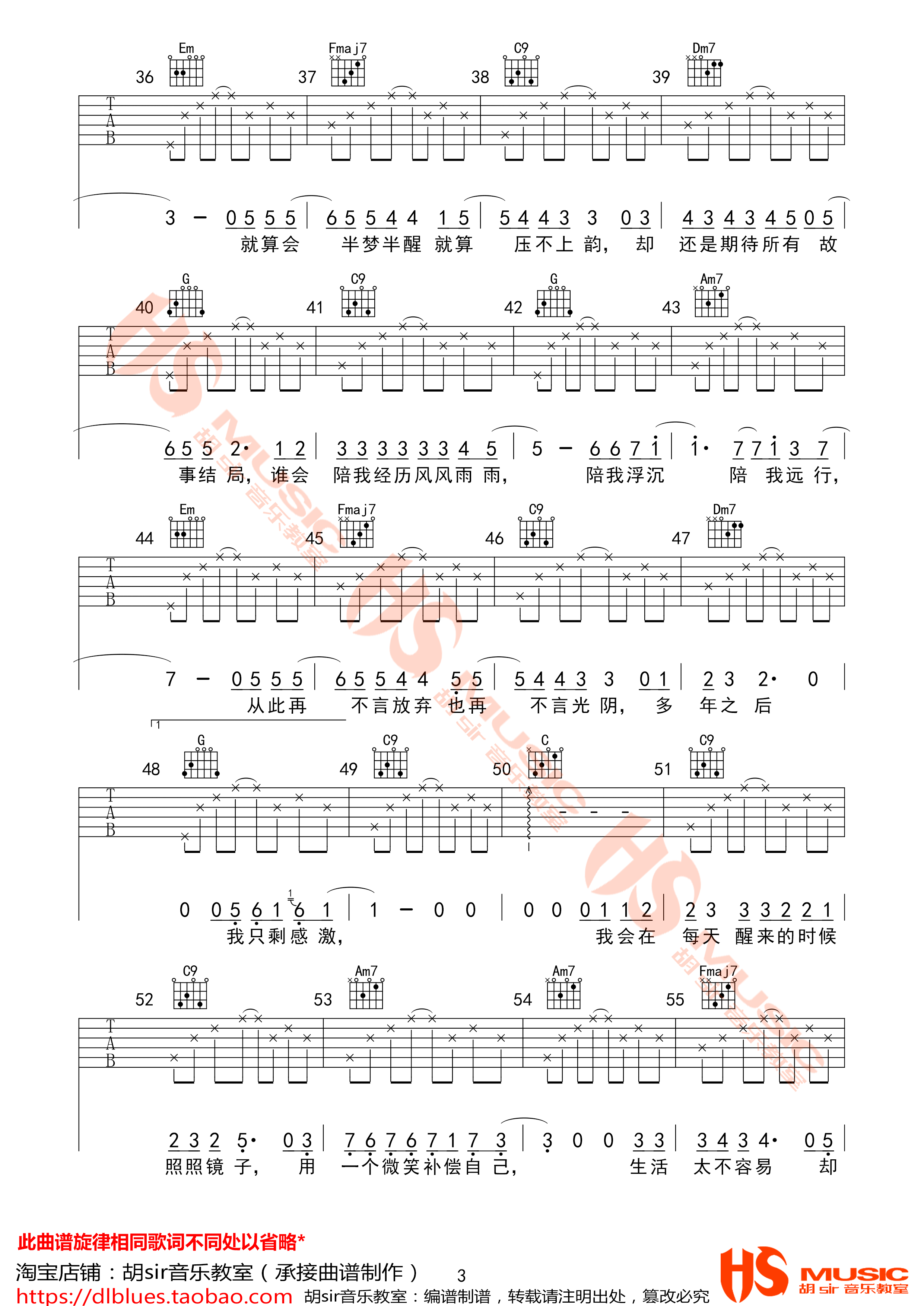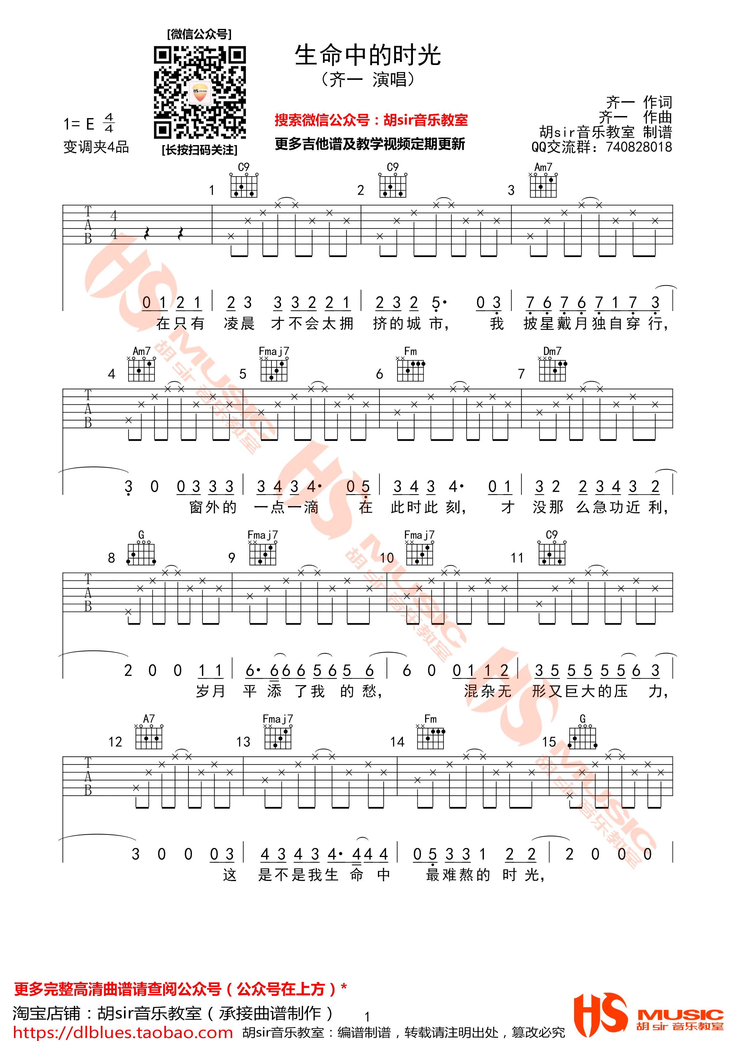 曲谱介绍: 生命中那些那些难熬的时光,终将会在某一天找到所有孤独的意义。齐一《生命中的时光》吉他谱分享,来自胡sir编配E调高清六线谱,弹唱变调夹夹第四品。齐一的音乐重视旋律的真诚和歌词的朴实,这样的作品的确也更容易打动人心,引起听众心底的共鸣。