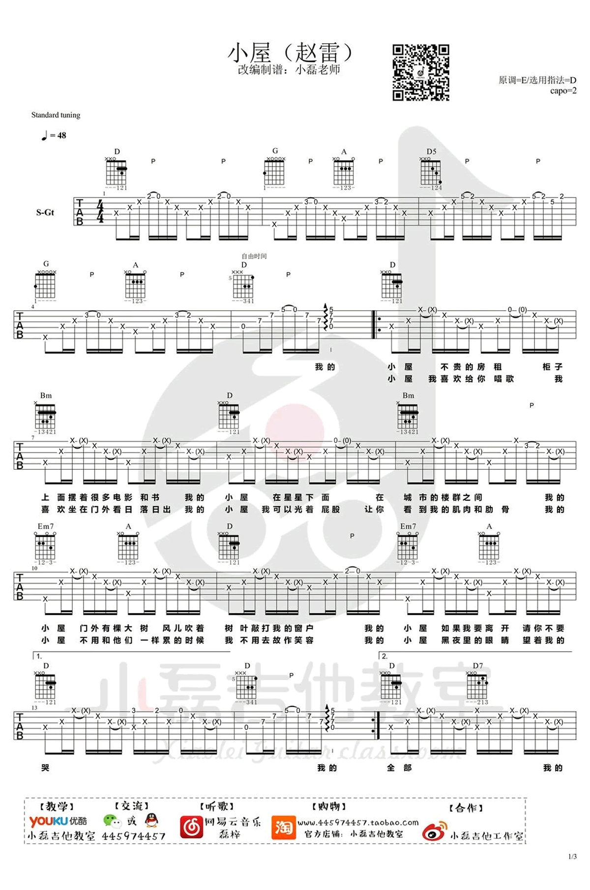 小屋吉他谱 - 赵雷 - D调吉他弹唱谱