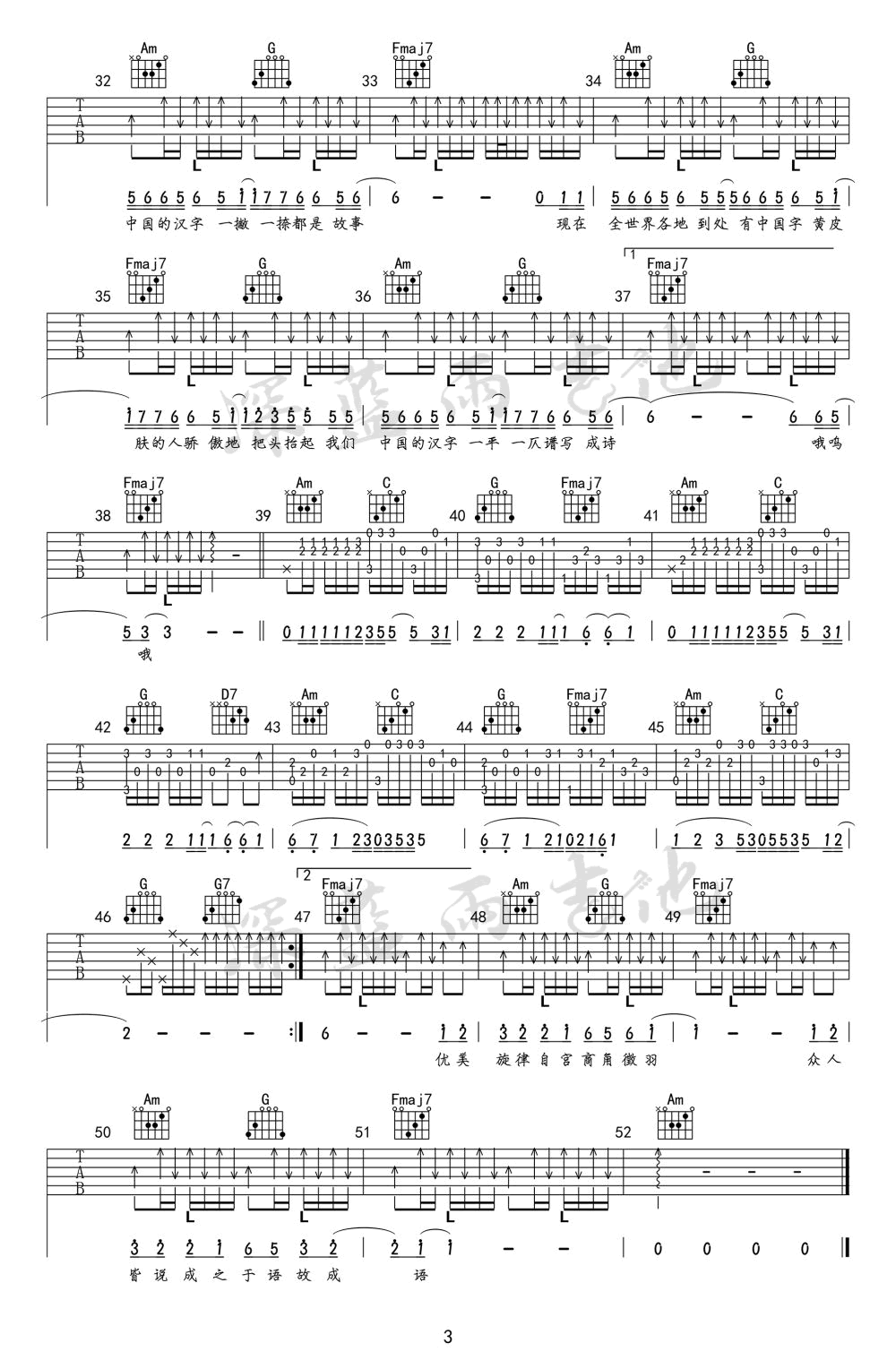 生僻字吉他谱 - 吉他弹唱谱