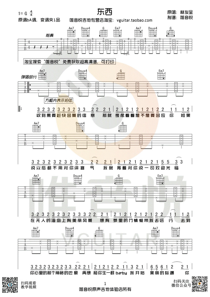 曲谱介绍: 林俊呈 东西吉他谱,原调bA调,变调夹夹一品,选用G调指法,一首网络热门甜蜜情歌,东西六线谱,带前奏间奏超简单编配,唯音悦出品,91吉他谱网站上传分享。 甜甜歌颂美好爱情的歌曲,唱出了所有恋爱女生的心声,温暖的歌声甜蜜的歌词,仿佛看到了一个百依百顺“说东就往东说西就往西的爱人,简直不要太美滋滋。