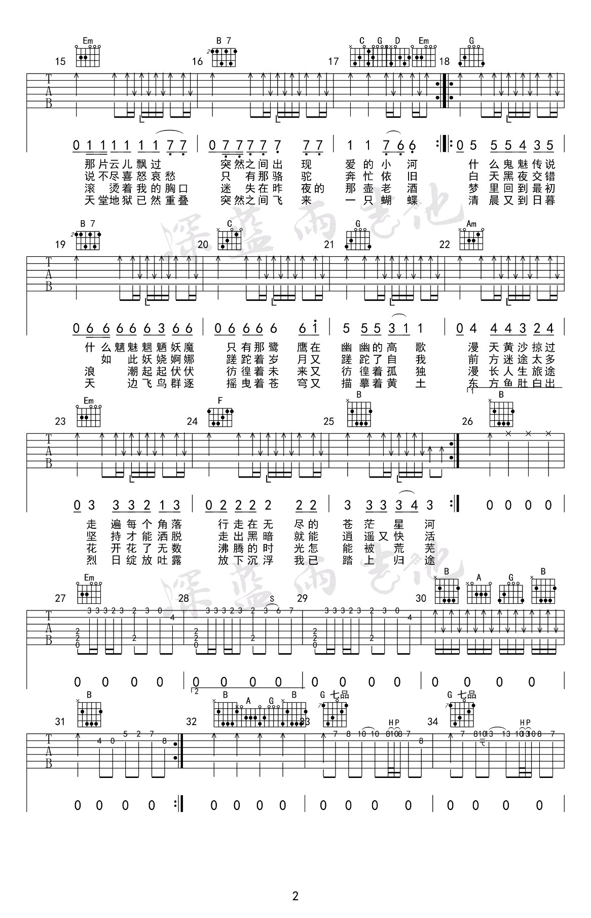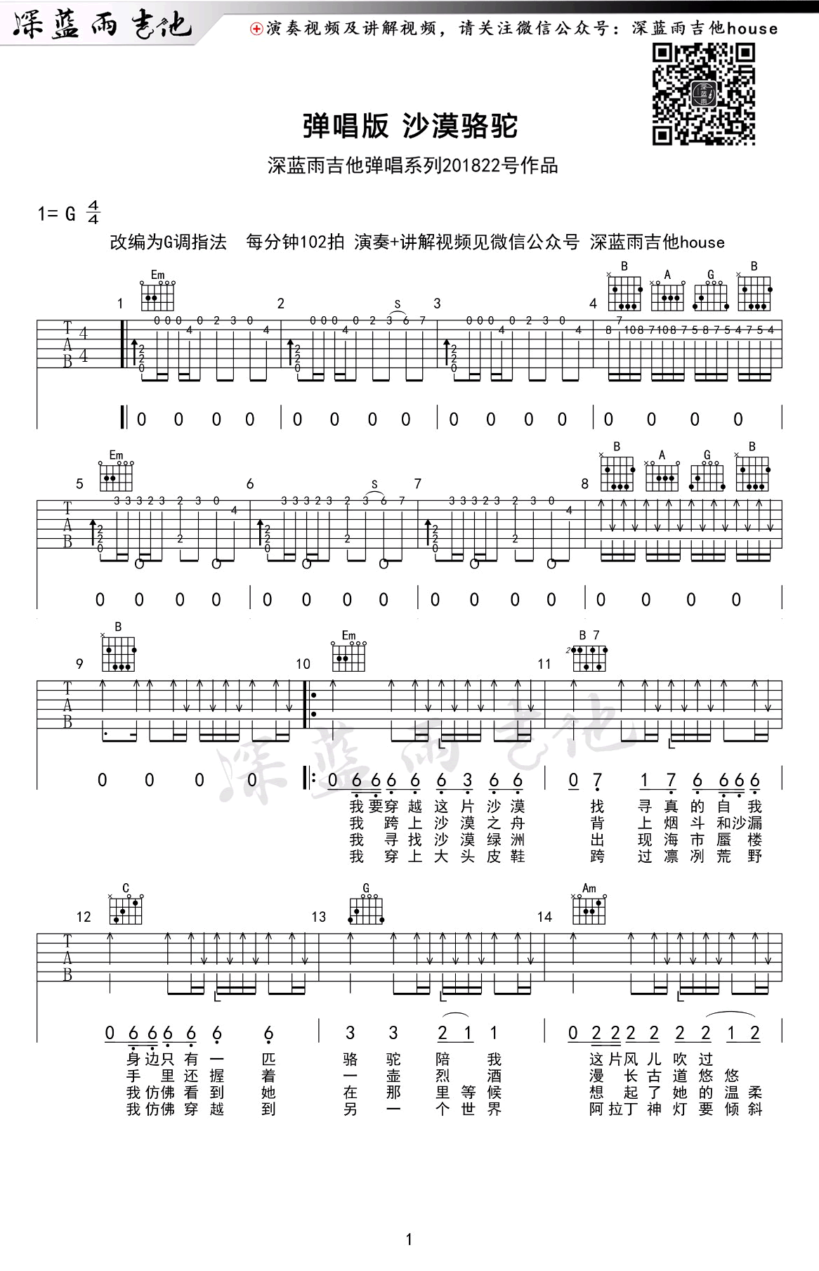 沙漠骆驼吉他谱 - 深蓝雨吉他 - G调吉他弹唱谱