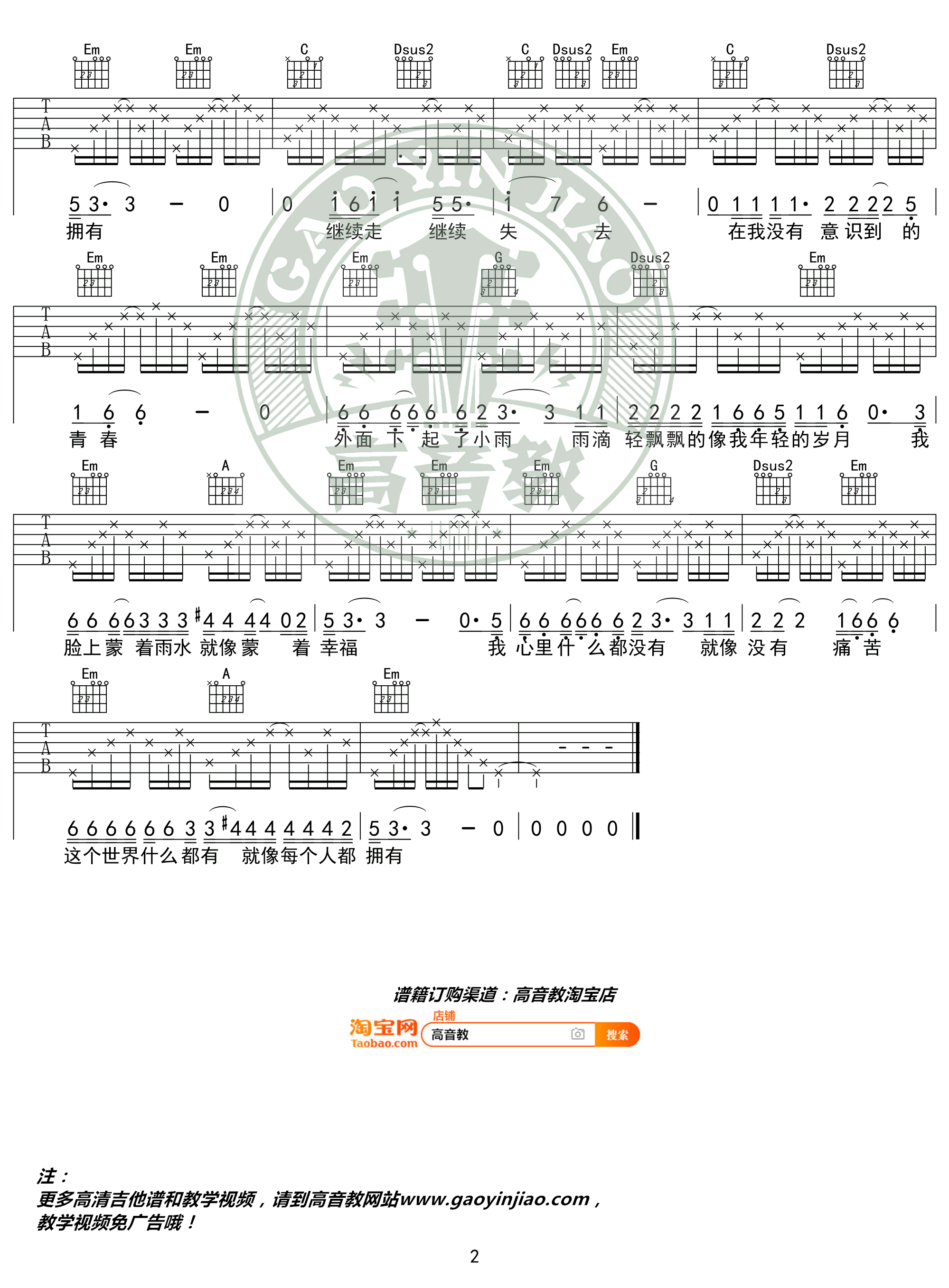 当前位置:琴谱网>吉他弹唱>青春