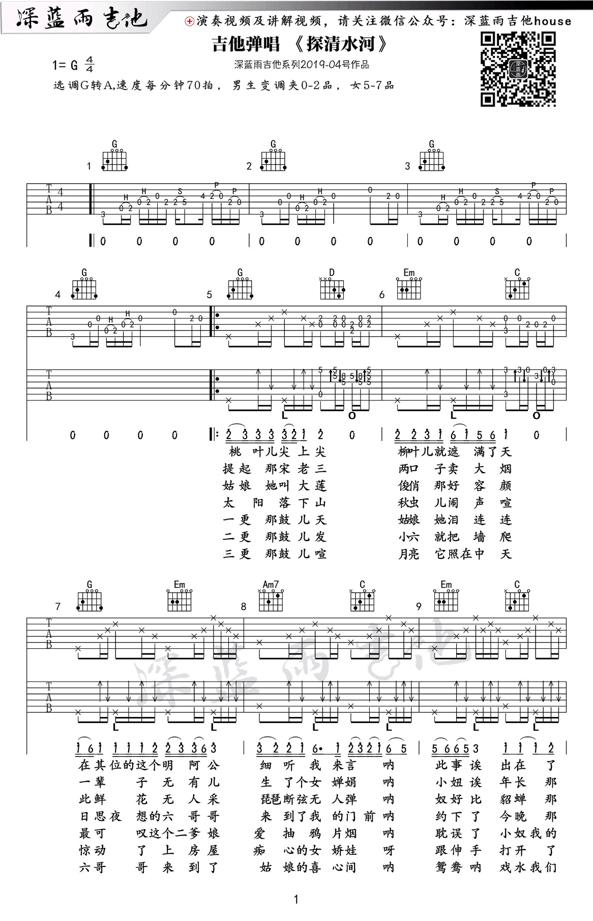 探清水河吉他谱 - G调吉他弹唱谱