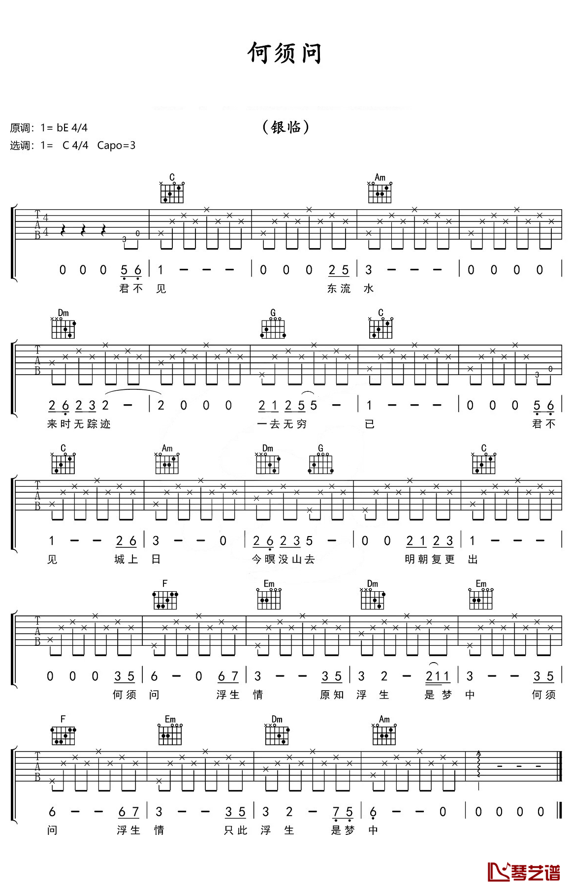 何须问吉他谱 - 银临 - 吉他弹唱谱