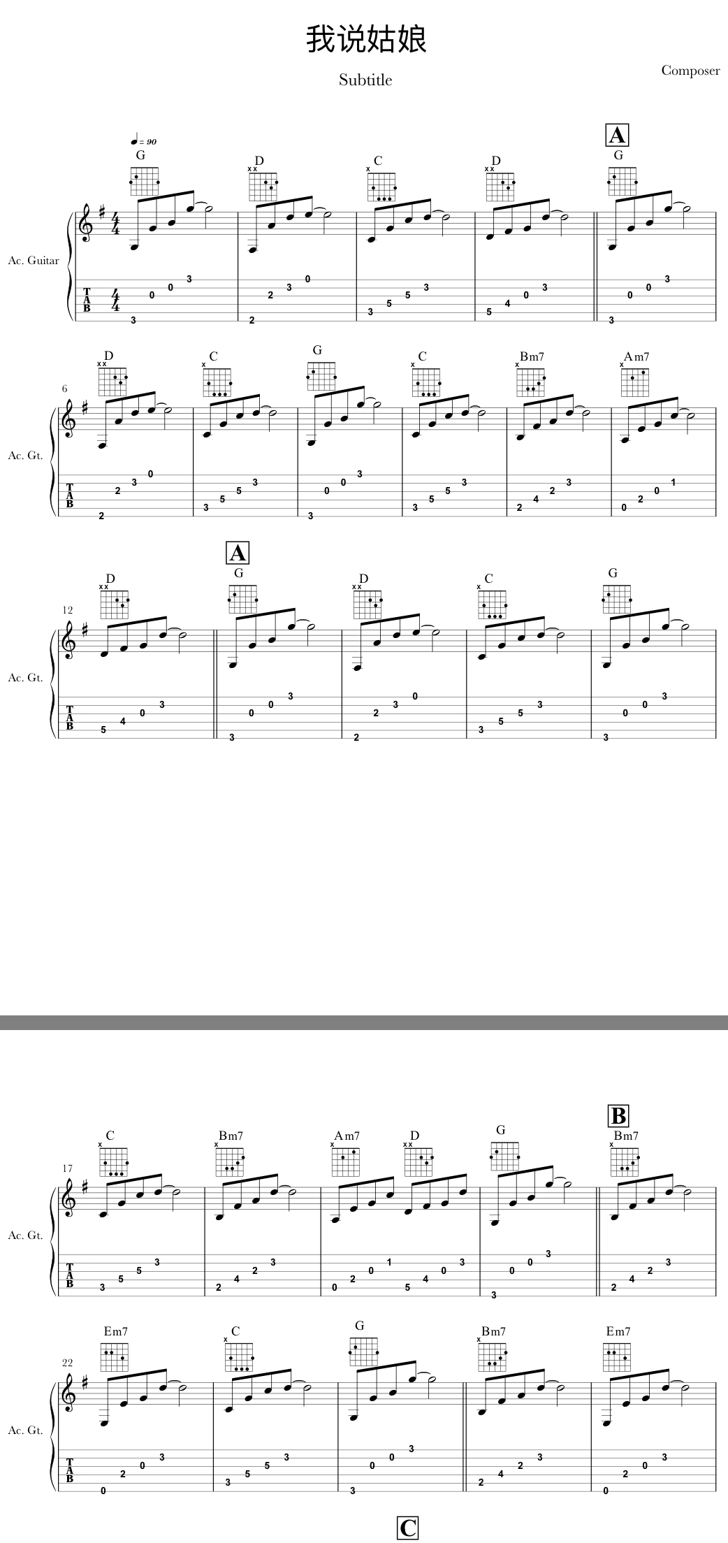 我说姑娘吉他谱 - 曹方瑞 - 吉他独奏谱