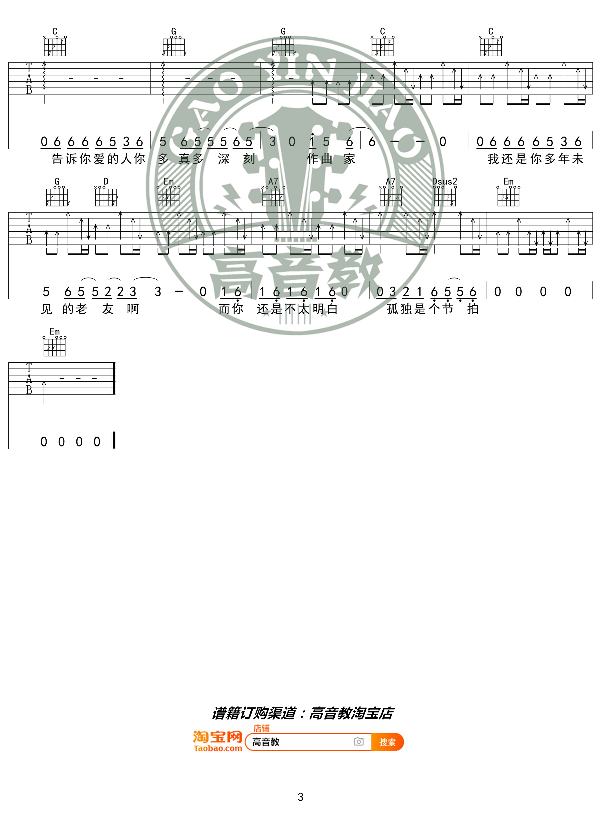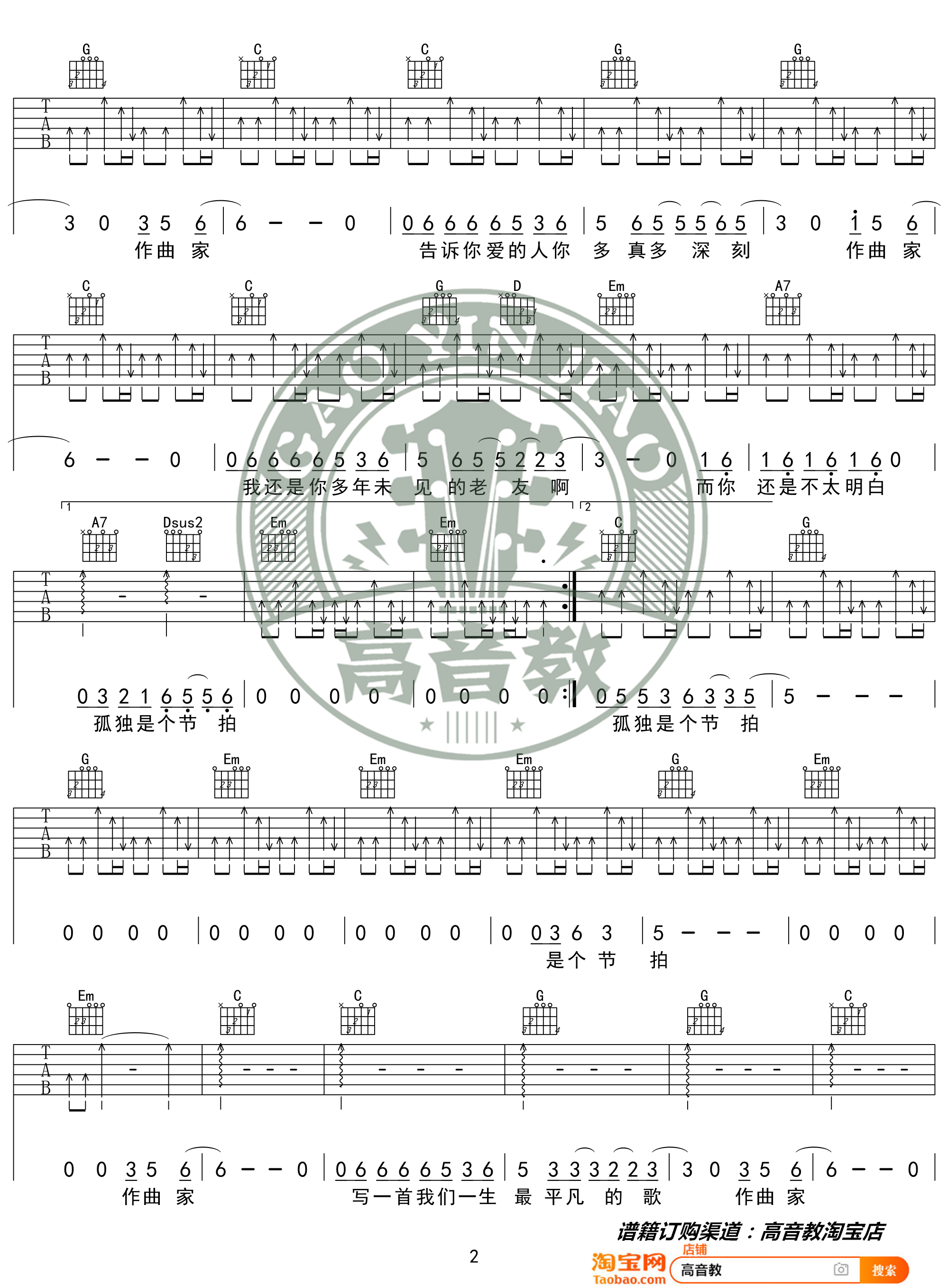 作曲家吉他谱 - G调吉他独奏谱