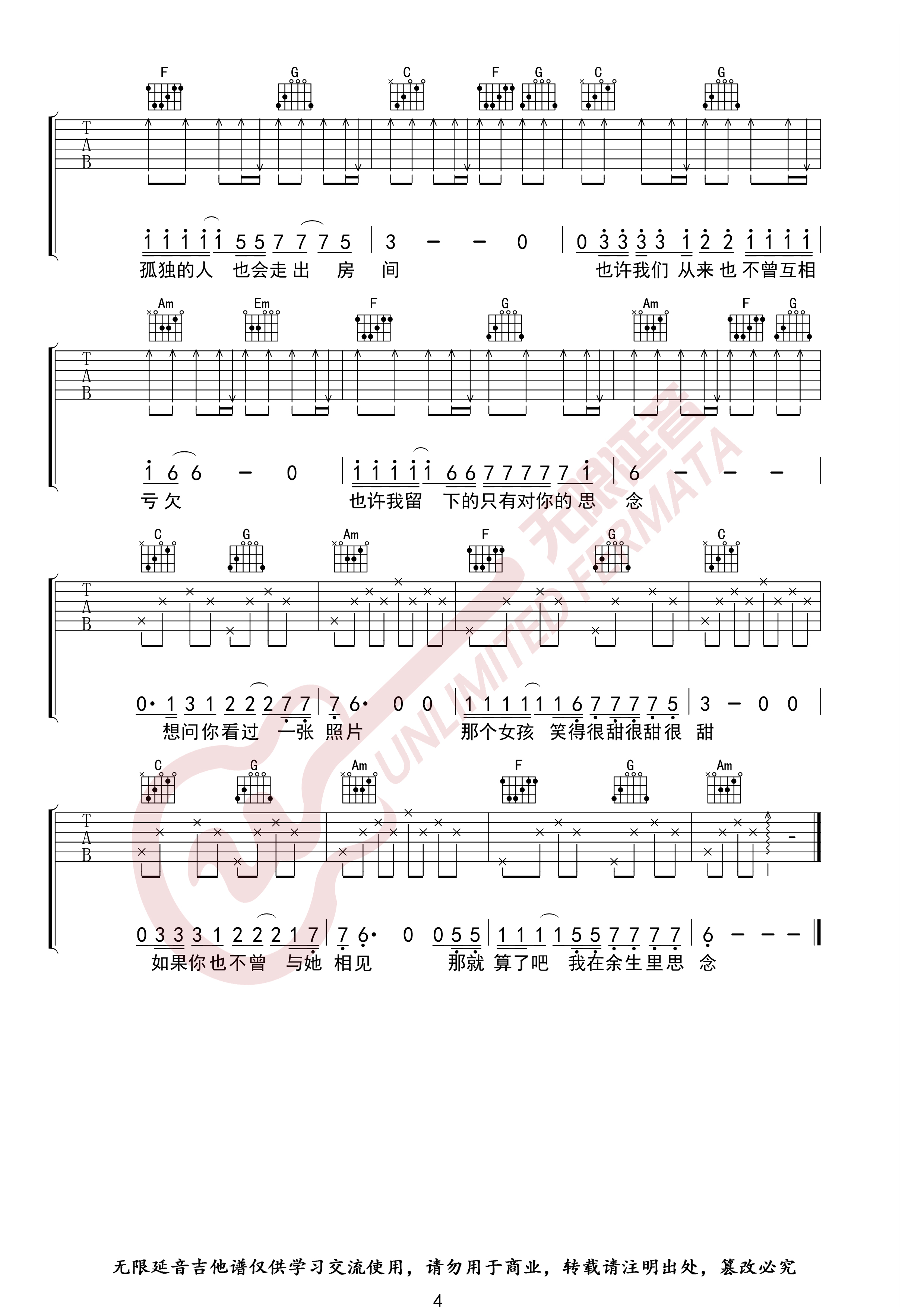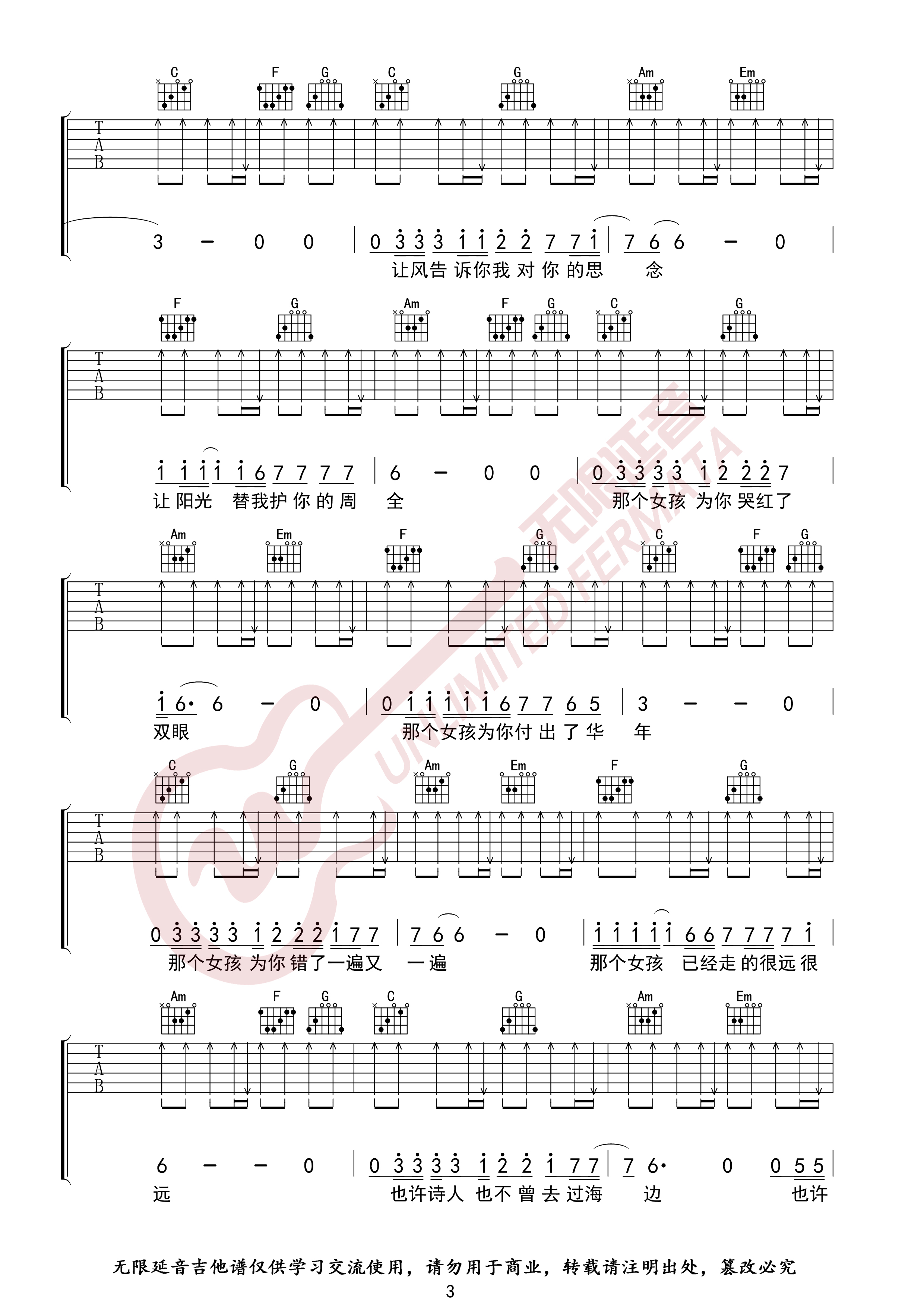 那个女孩吉他谱 - 张泽熙 - 吉他独奏谱