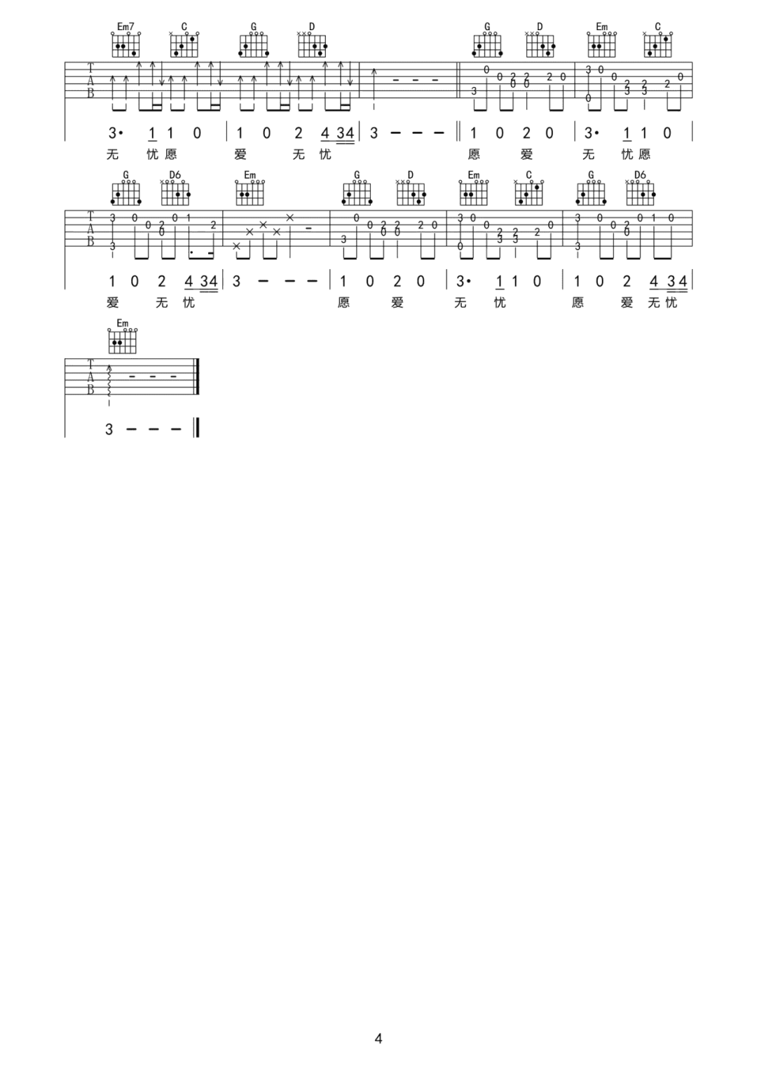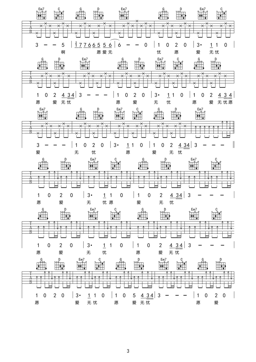 当前位置:琴谱网>吉他弹唱>愿爱无忧