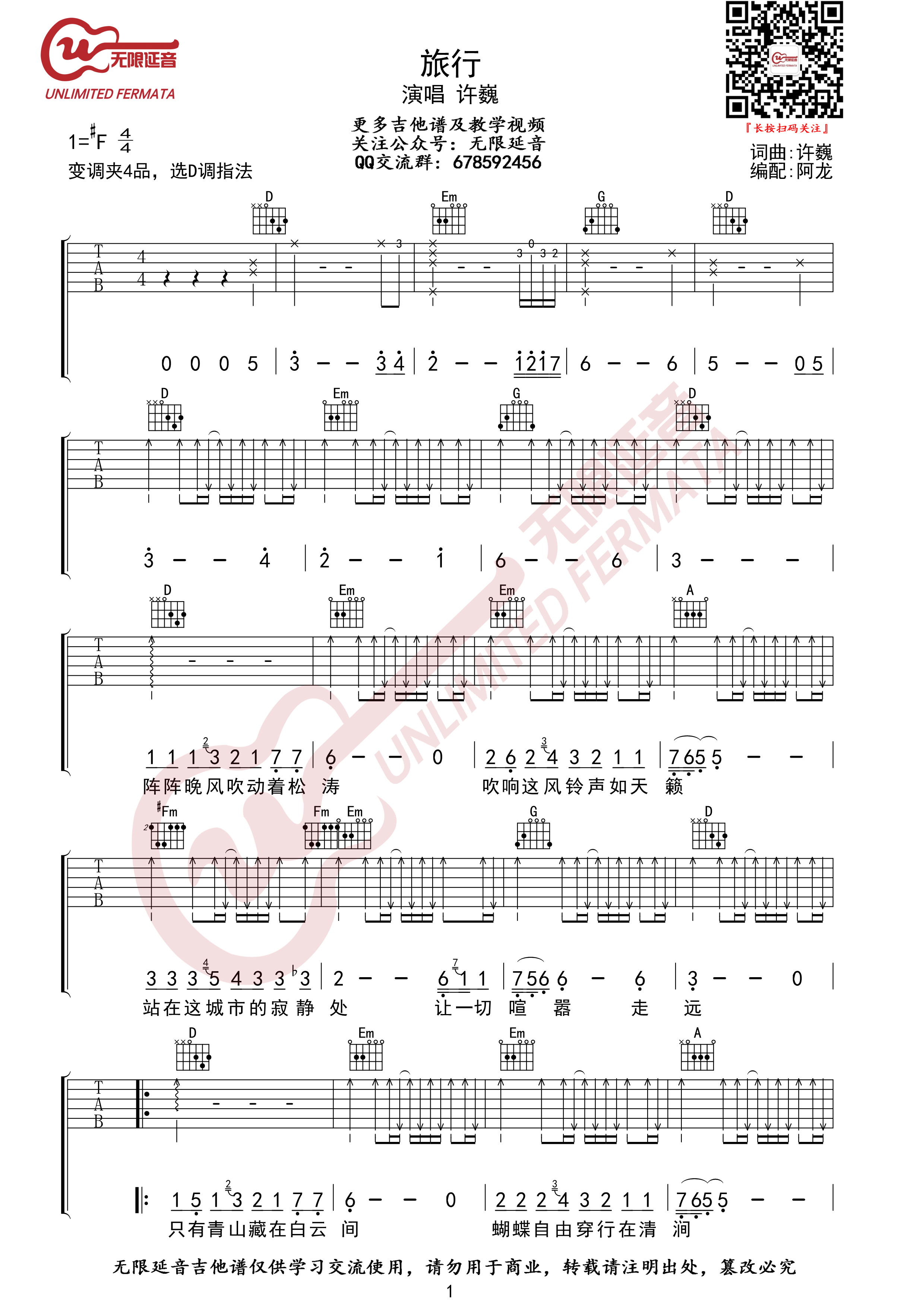旅行吉他谱 - 许巍 - D调吉他弹唱谱