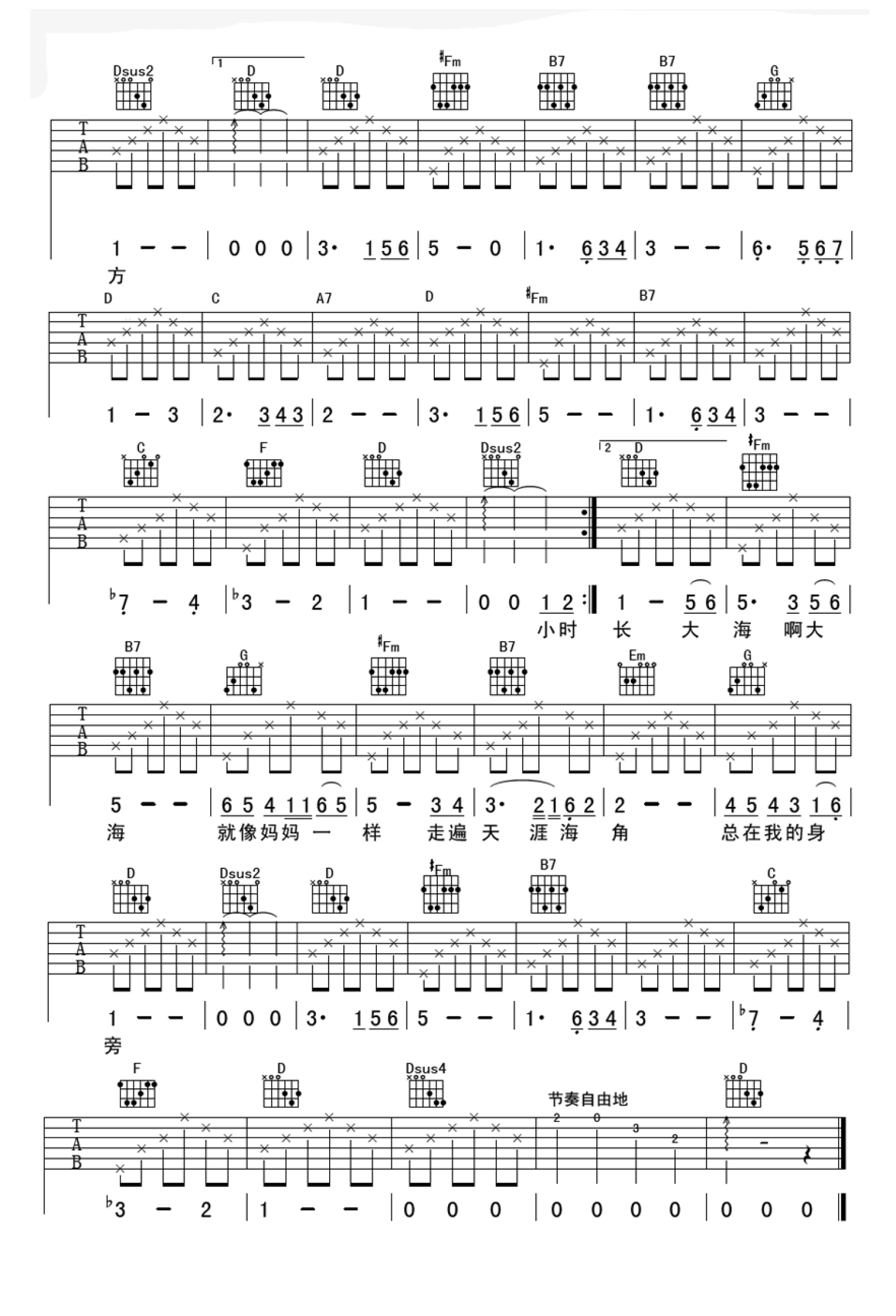 当前位置:琴谱网>吉他弹唱>大海啊故乡