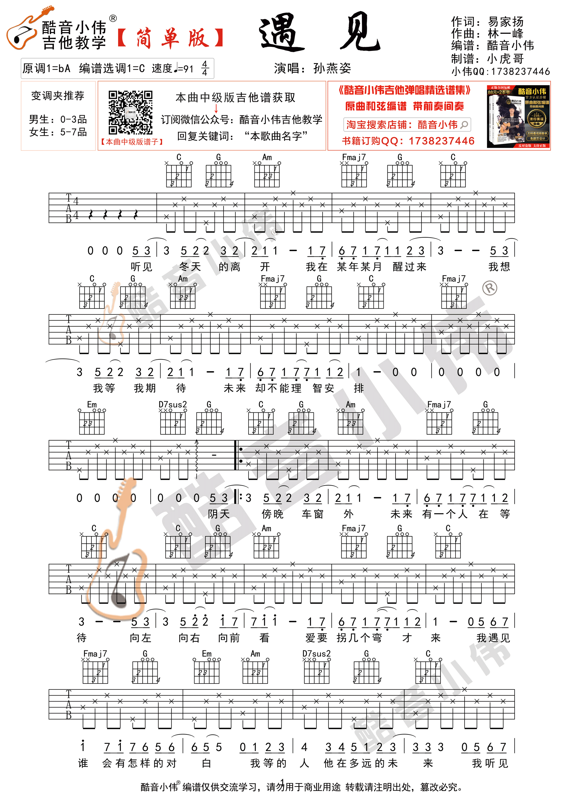 遇见吉他谱 - 孙燕姿 - 吉他弹唱谱