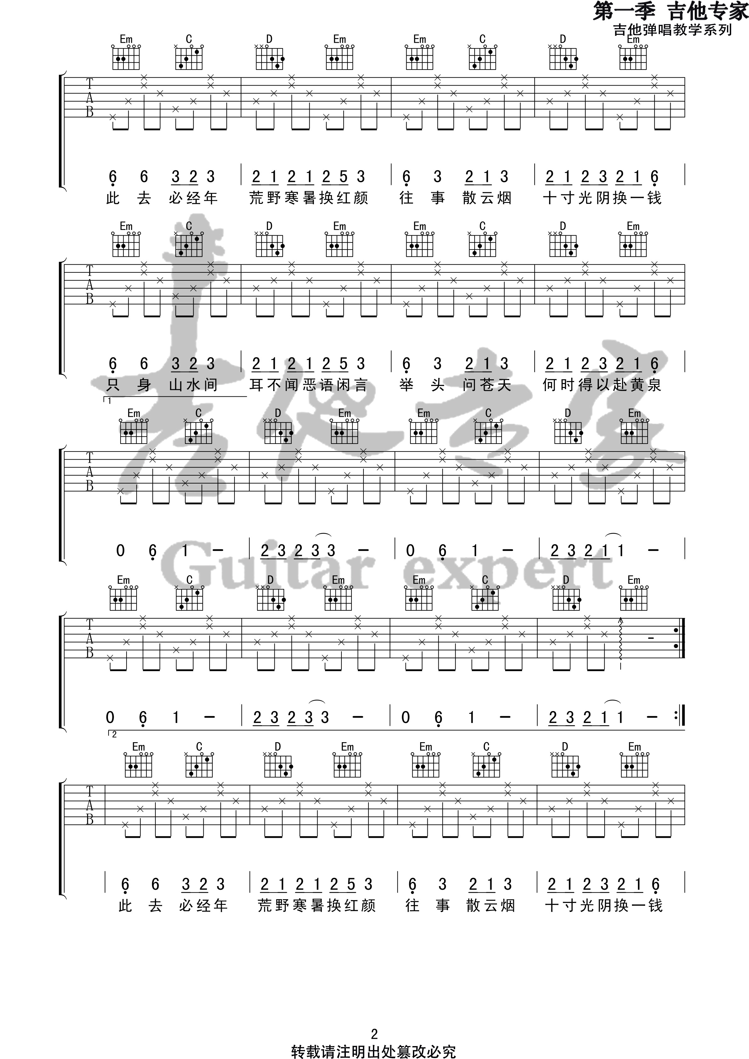 归去来兮吉他谱 - 花粥 - 吉他独奏谱